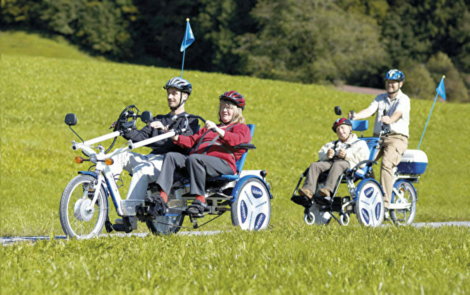 Sur la base de loisirs de Brognard, près de Montbéliard, Colibrius loue des tricycles spécialement étudiés pour les personnes handicapés. Une piste cyclable de quelques kilomètres permet de rejoindre facilement l'Eurovélo 6