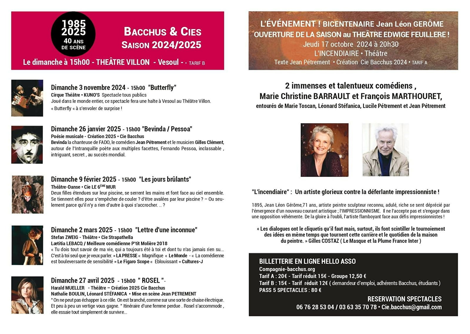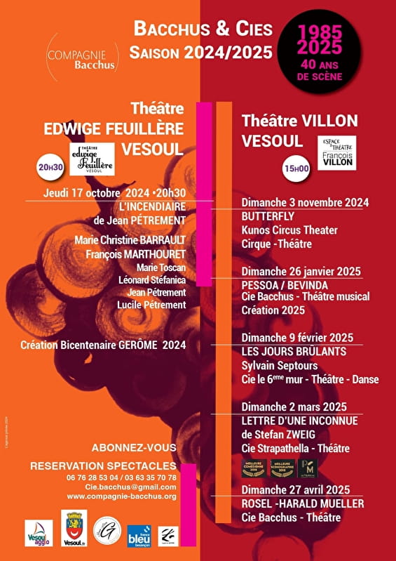 La cie Bacchus présente une saison de spectacles, théâtre, danse, cirque, à Vesoul dans le magnifique théâtre Villon -300 places-