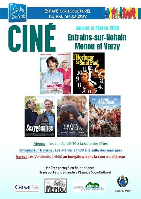 Cycle cinéma au bungalow du Château de Varzy - Chaque vendredi - Adhésion obligatoire à l'Espace SocioCulturel du Val du Sauzay (12€) - Séances gratuites - Goûter partagé en fin de séance