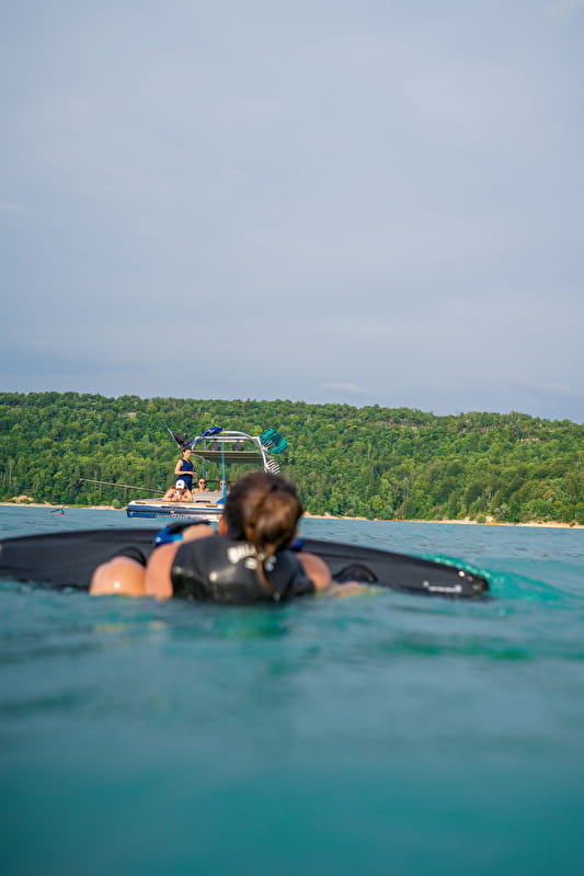 Imaginez-vous en train de surfer sur une vague éternelle, propulsé par la puissance du bateau, tout en ressentant la liberté de vous déplacer librement sur l'eau. Le wakesurf offre une expérience unique, où vous pourrez exprimer votre créativité en réalisant des figures, des tricks et des virages serrés, tout en harmonie avec la vague.