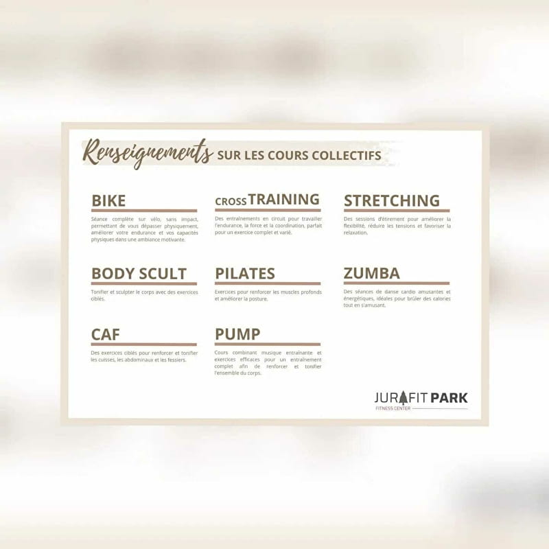 Salle de sport JURAFIT PARK : espace aménagé, équipé pour la pratique de diverses activités physiques et sportives.