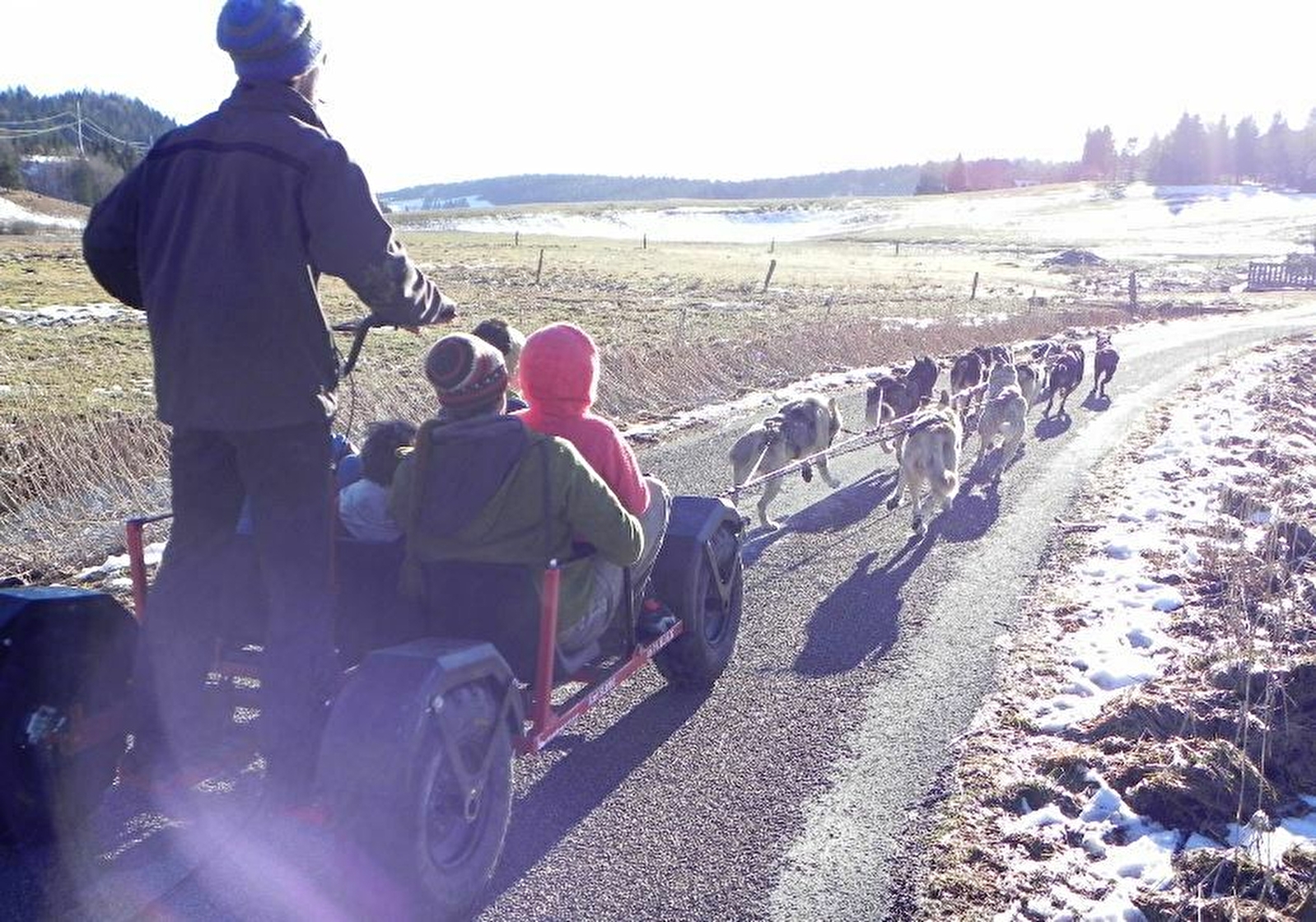 C'est la même activité que les baptêmes en traîneau, sauf que l'attelage tire un kart où peuvent être installées confortablement 4 personnes (adultes et/ou enfants).