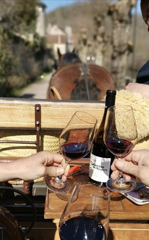 Apéro calèche, dégustez une bouteille de vin tout au long du parcours avec explication de notre projet de réimplanter le vignoble de Noyers (1h)