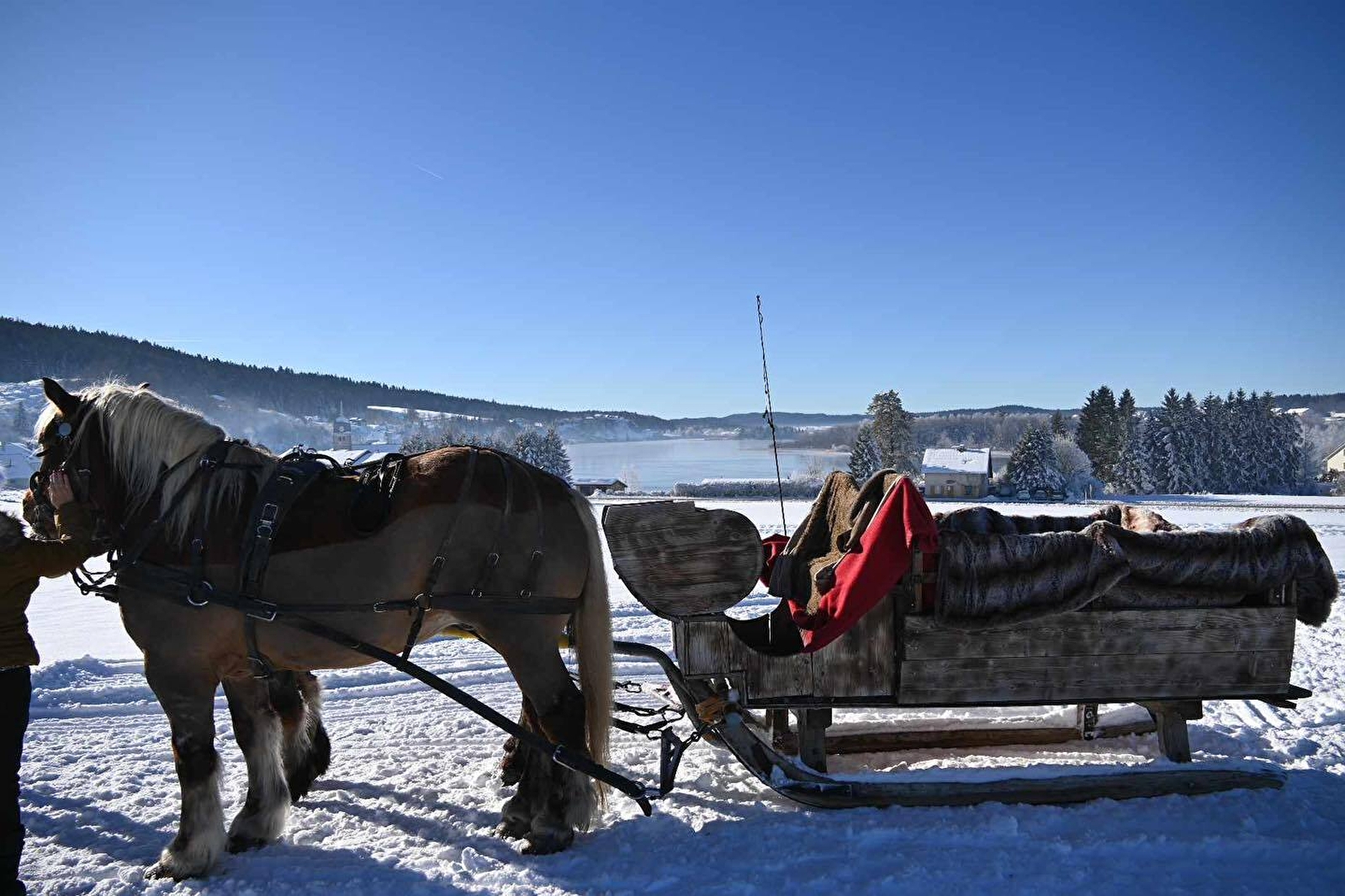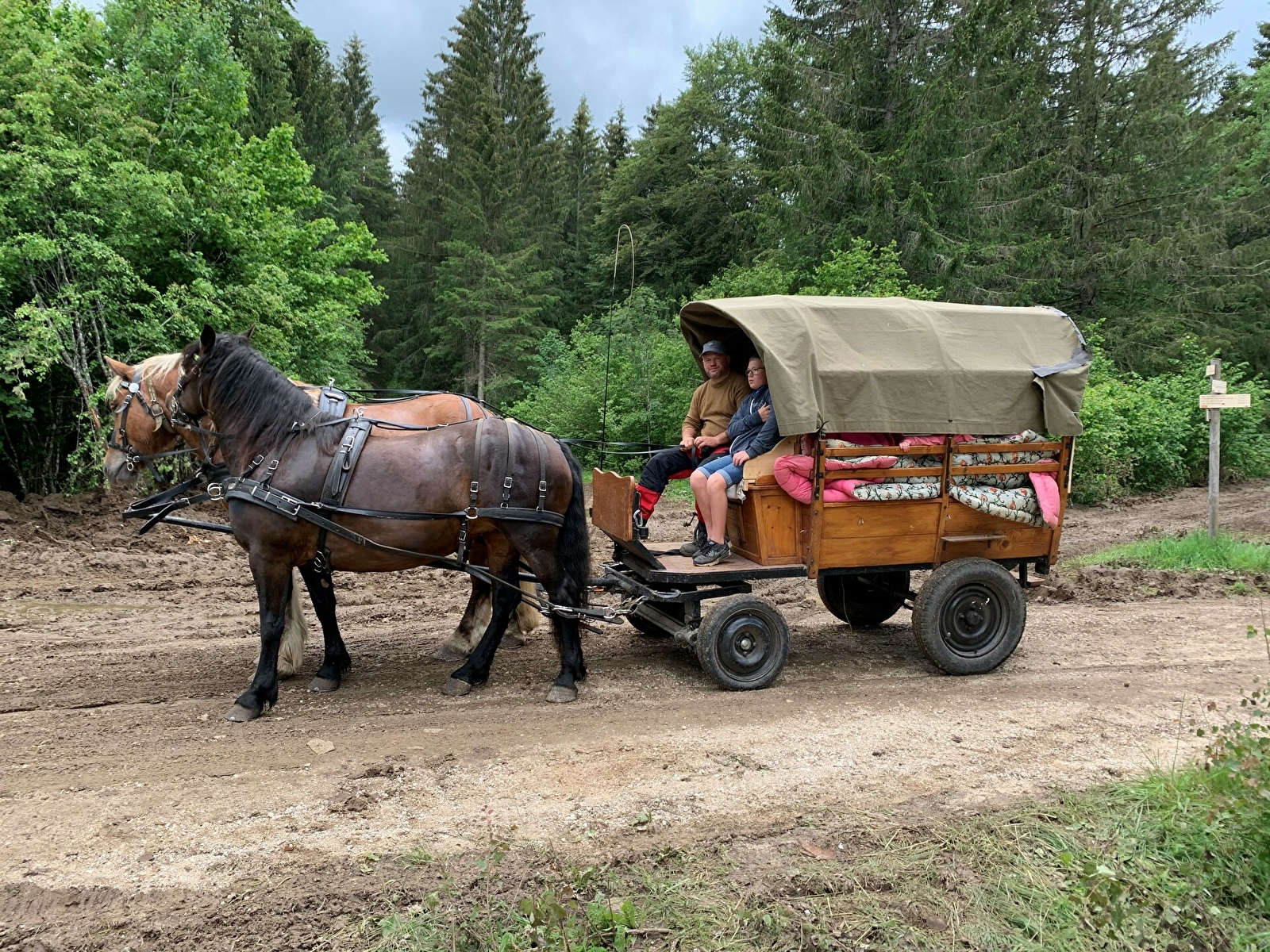 Venez découvrir le Grandvaux et ses richesses naturelles attelés avec des chevaux comtois.