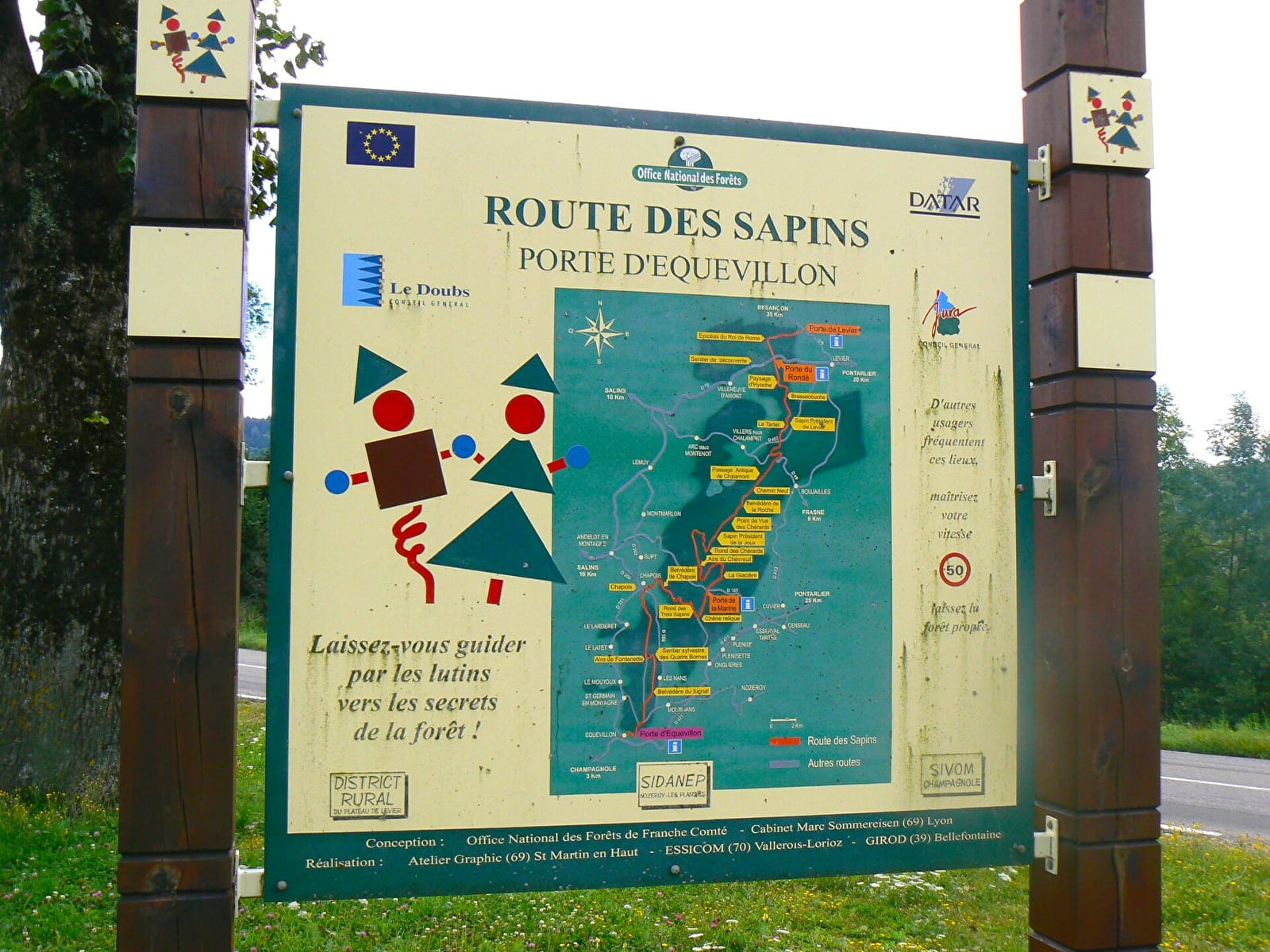 Les petits lutins vous guident tout le long de la Route des Sapins, de Champagnole à Levier, à travers une des plus belles sapinières d'Europe, jalonnée de 19 sites touristiques permettant de découvrir son histoire, sa faune, sa flore, sa particularité, son exploitation, ses balades, ses belvédères, ses aires de jeux...