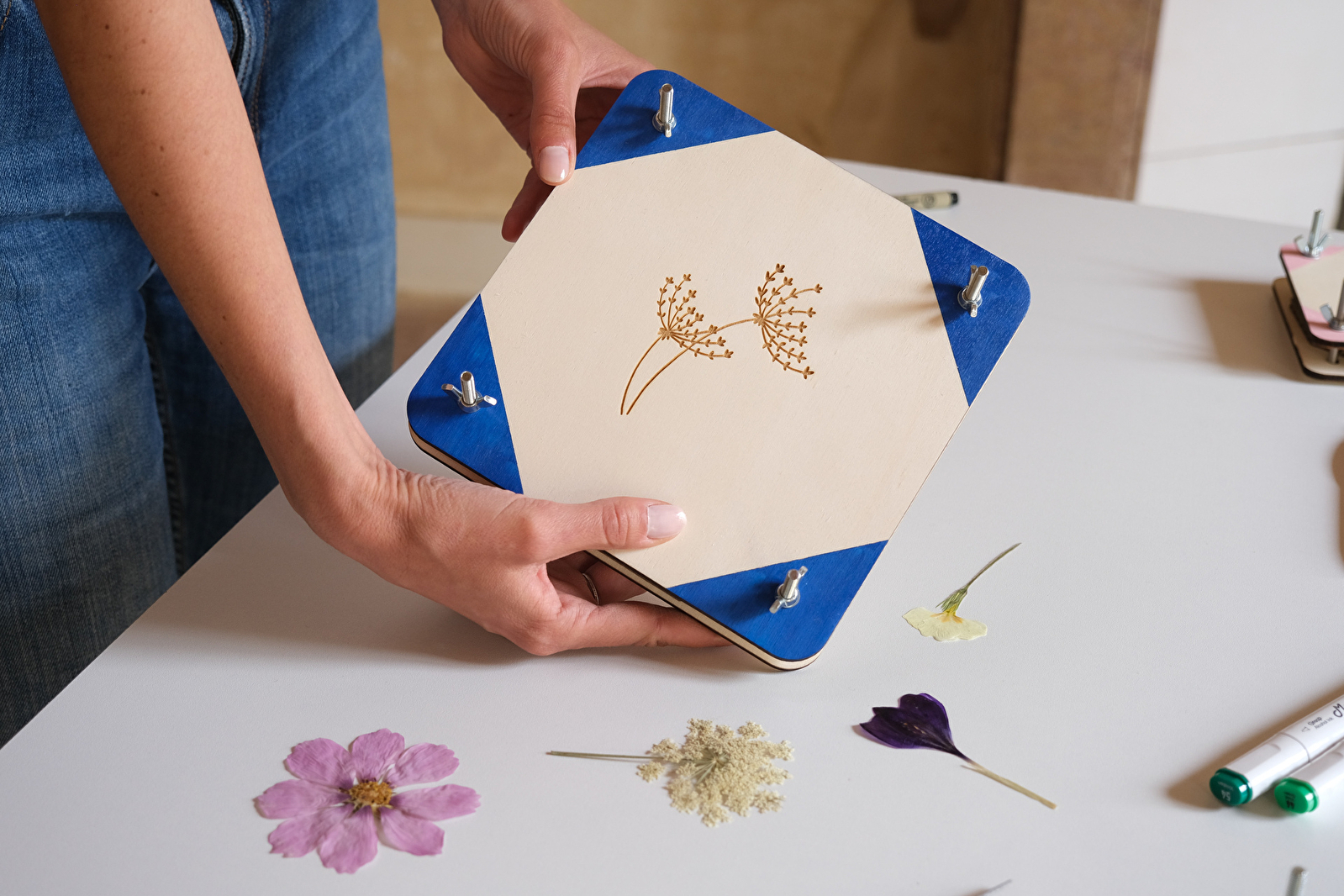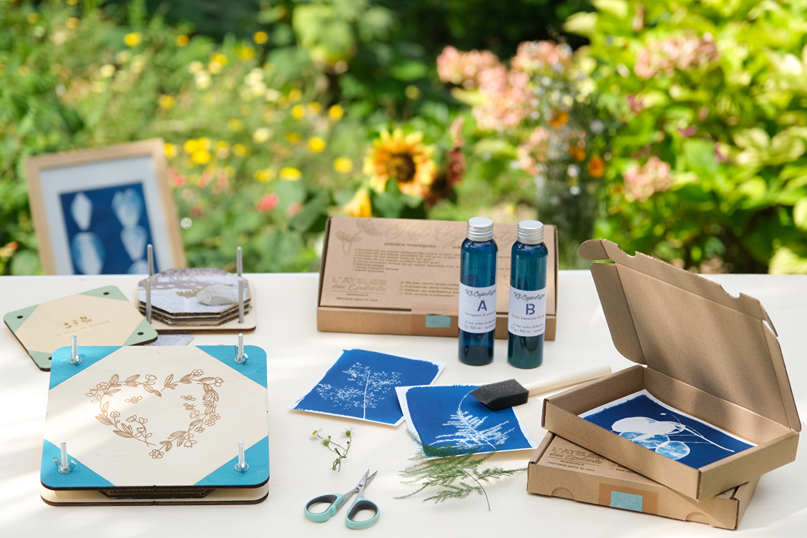 Nous avons par exemple conçu des kits pour monter soi-même une presse à fleurs pour herbier, ou encore des kits autour du cyanotype, une technique d’impression solaire au bleu de Prusse.