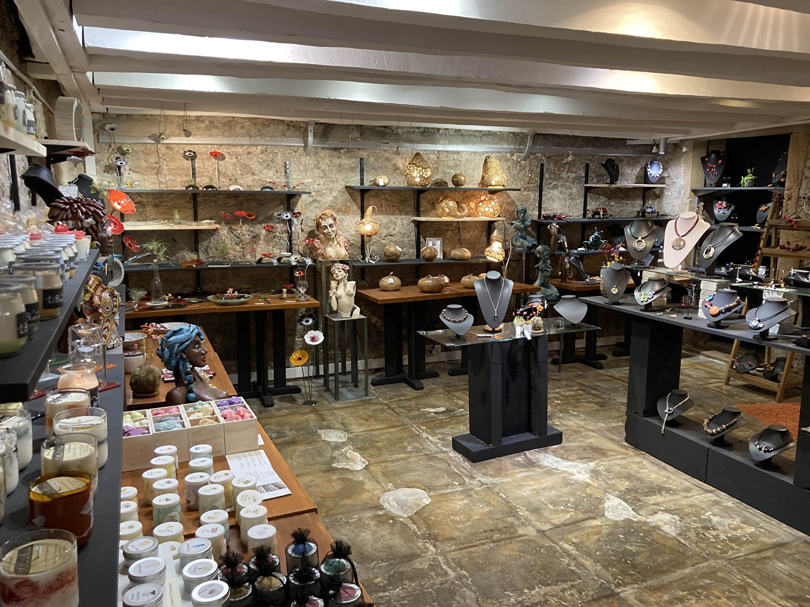 Vous trouverez des créations exceptionnelles, sensationnelles, atypiques, renouvelées tous les 6 mois et françaises, fabriquées par des artisans d’art : poteries, accessoires de mode dans différents textiles (gants, étoles, foulards, chapeaux, vêtements…), cuir (sacs, ceintures…), mais également des objets décoratifs, du mobilier, des peintures et des sculptures…