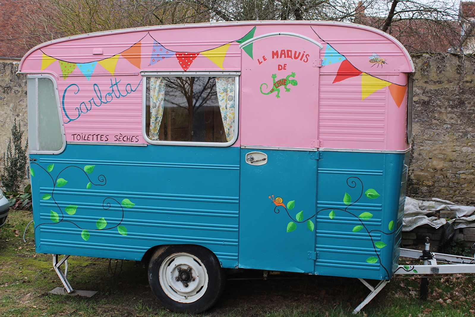 L'association loue « Carlotta", une jolie caravane de 1946 transformée en toilettes sèches. Elle est composée de deux cabines de toilettes et un point d’eau. Différentes prestations peuvent vous être proposées en fonction de vos besoins ou budgets : festivals, mariages, fêtes privées ou publiques, etc...