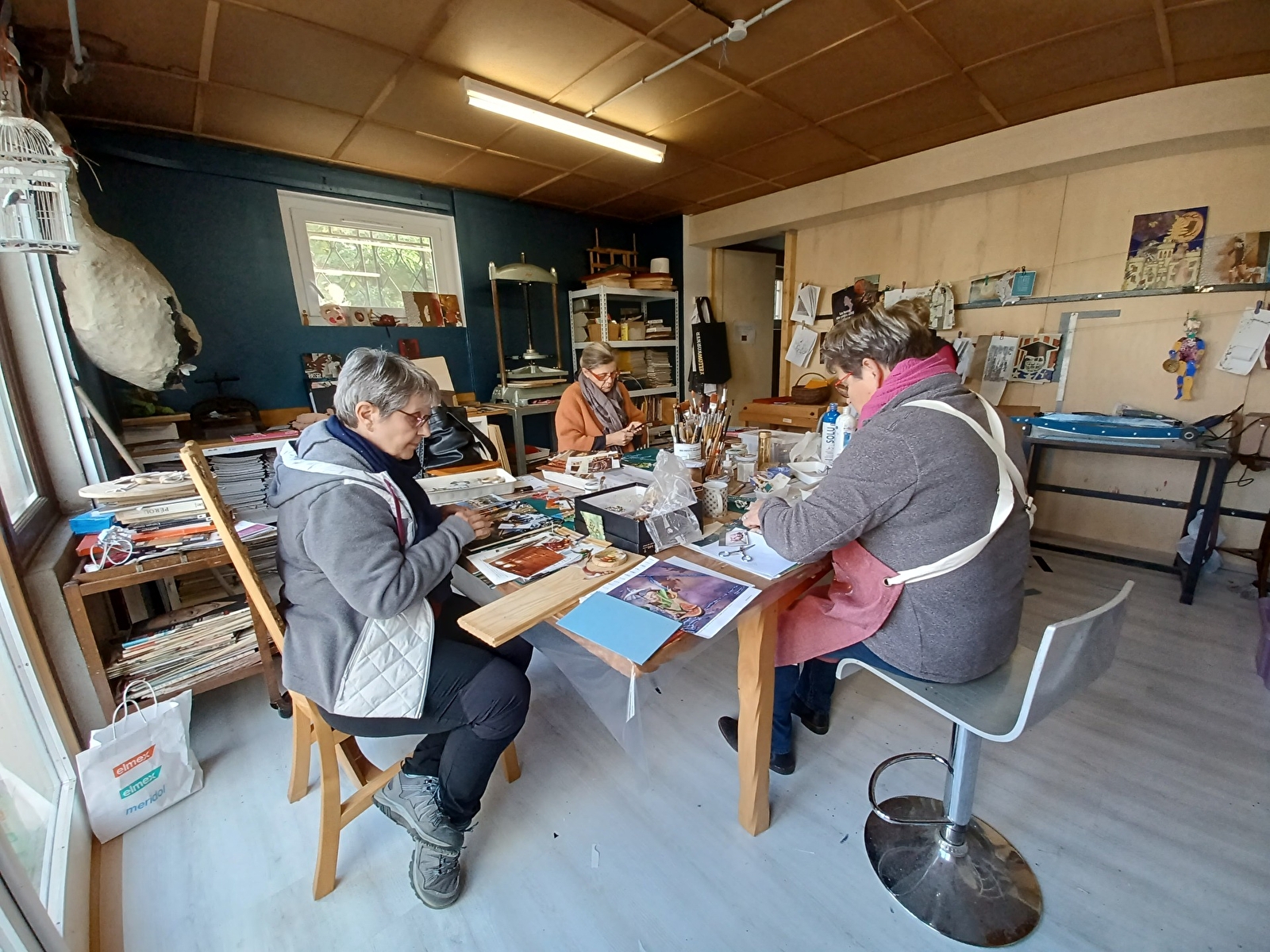 Je pratique depuis plusieurs années le collage que j’ai découvert lors de ma formation en Art-thérapie. J’y ai trouvé une vraie ressource personnelle, une manière d’exprimer mon rapport poétique et sensoriel au monde en mariant collage, matières et arts-plastiques. Dans mon atelier, loin de l’agitation, je me pose, j’oublie les tracas du quotidien. C’est dans ce sens que j’ai souhaité ouvrir mon atelier à ceux qui souhaitent vivre cette expérience. Chacun y trouve progressivement son propre univers.