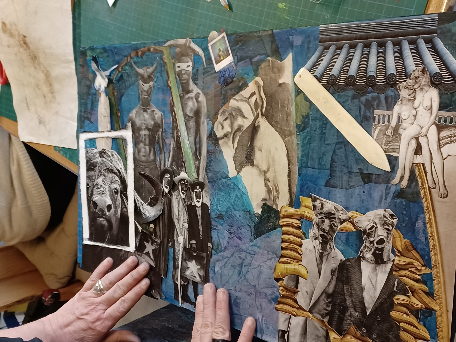 Le collage, c’est aussi un jeu de lâcher-prise particulier au moment de la sélection et de l’agencement. On ne peut pas. Quel processus psychique fait choisir certaines images plutôt que d’autres…? Il s’opère une sorte de « magie », quelque chose qui est hors de notre volonté.