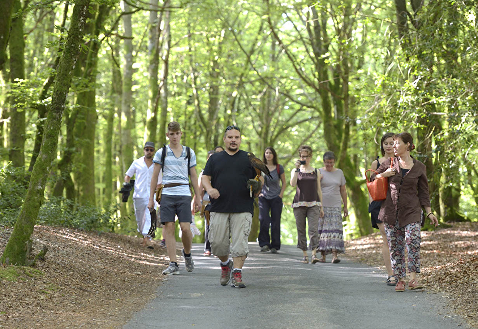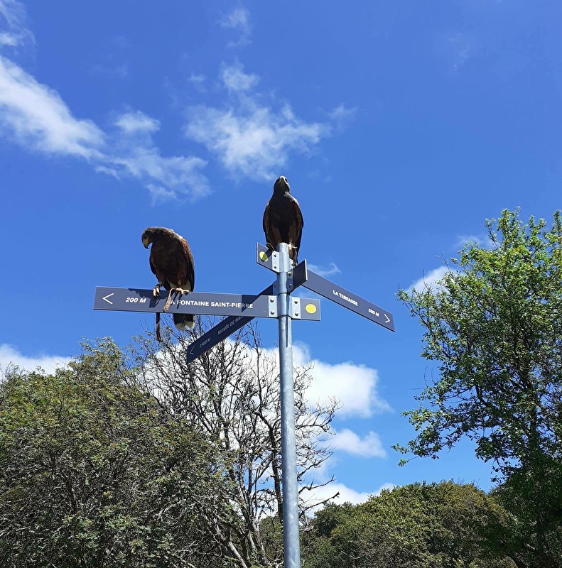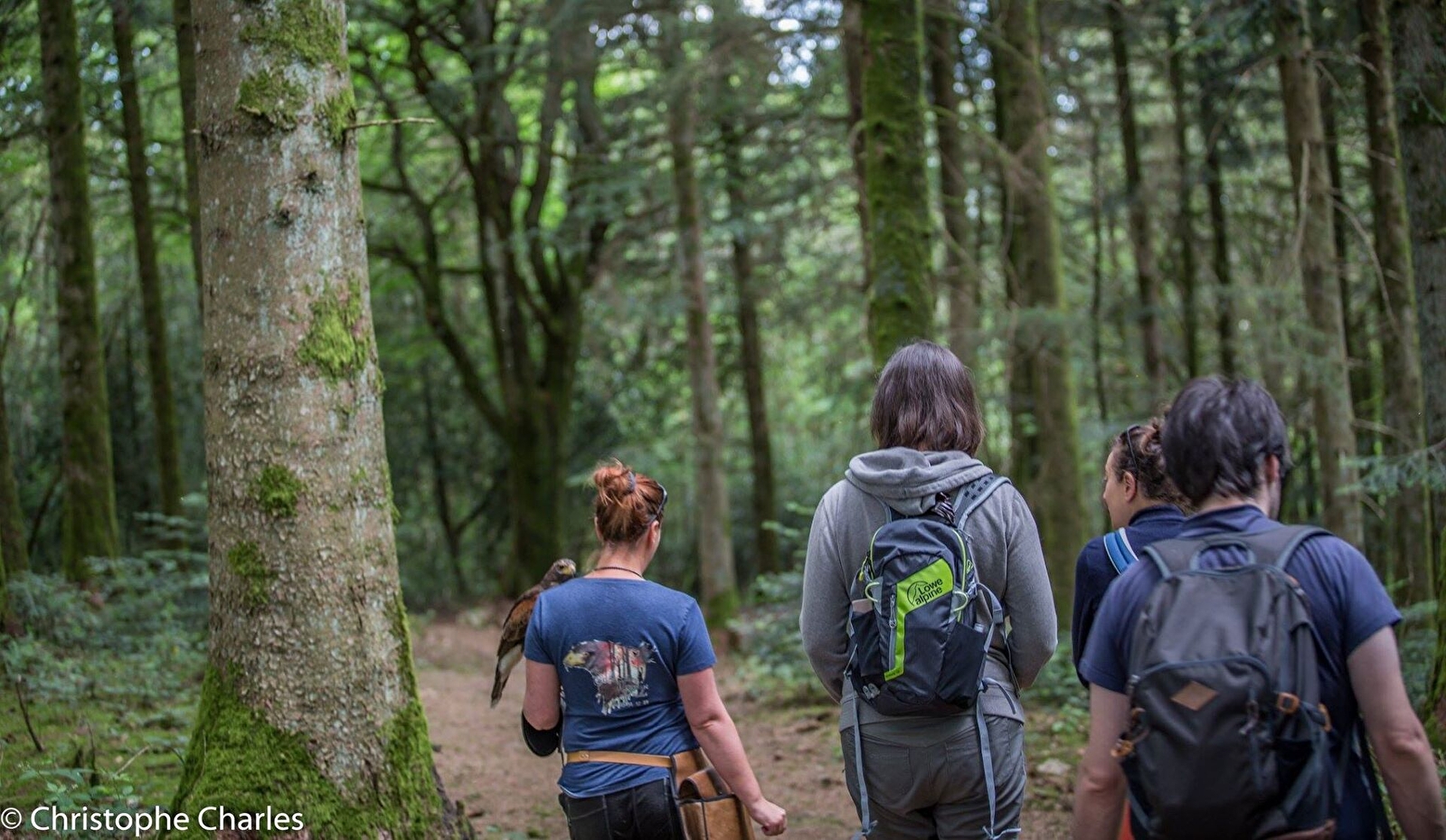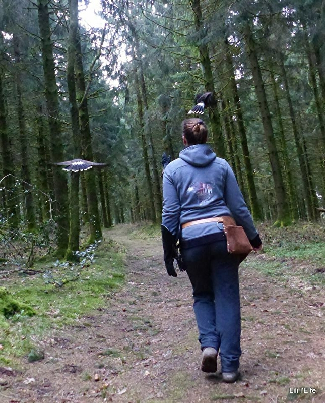 Une balade hors du temps en compagnie de rapaces en liberté, qui respecte les rythmes de chacun : des oiseaux, des enfants, des amoureux de la nature, des photographes, de ceux qui traînent les pieds, de ceux qui traînent le nez en l'air, de ceux qui ont 1000 questions, de ceux qui aiment le silence...