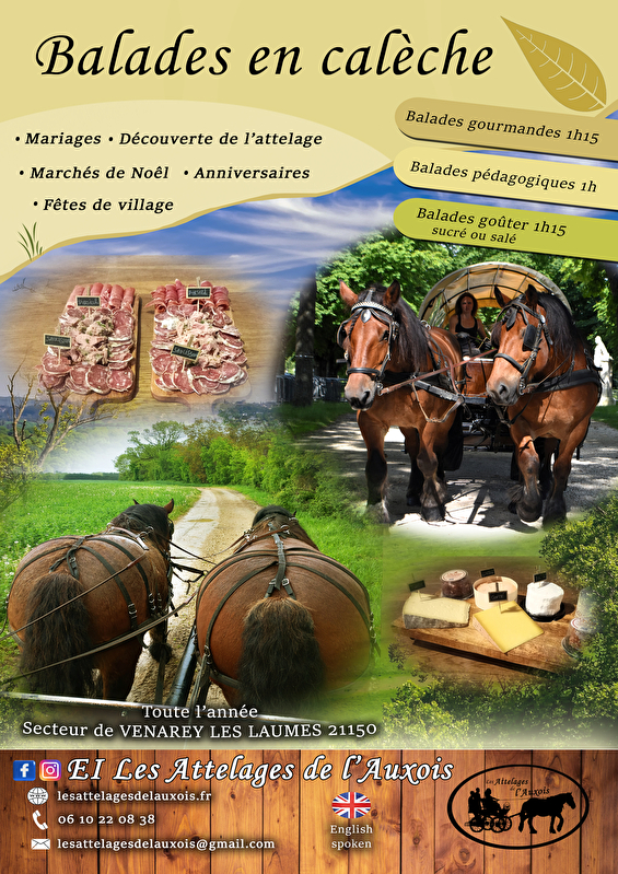 Aramis, Cacao ou Chocolat vous emmènent dans une vallée de l'Auxois à la découverte de la nature. Vous découvrirez de sympathiques petits coins de campagne et forestiers à travers une balade attelée agrémentée de commentaires sur la faune locale.