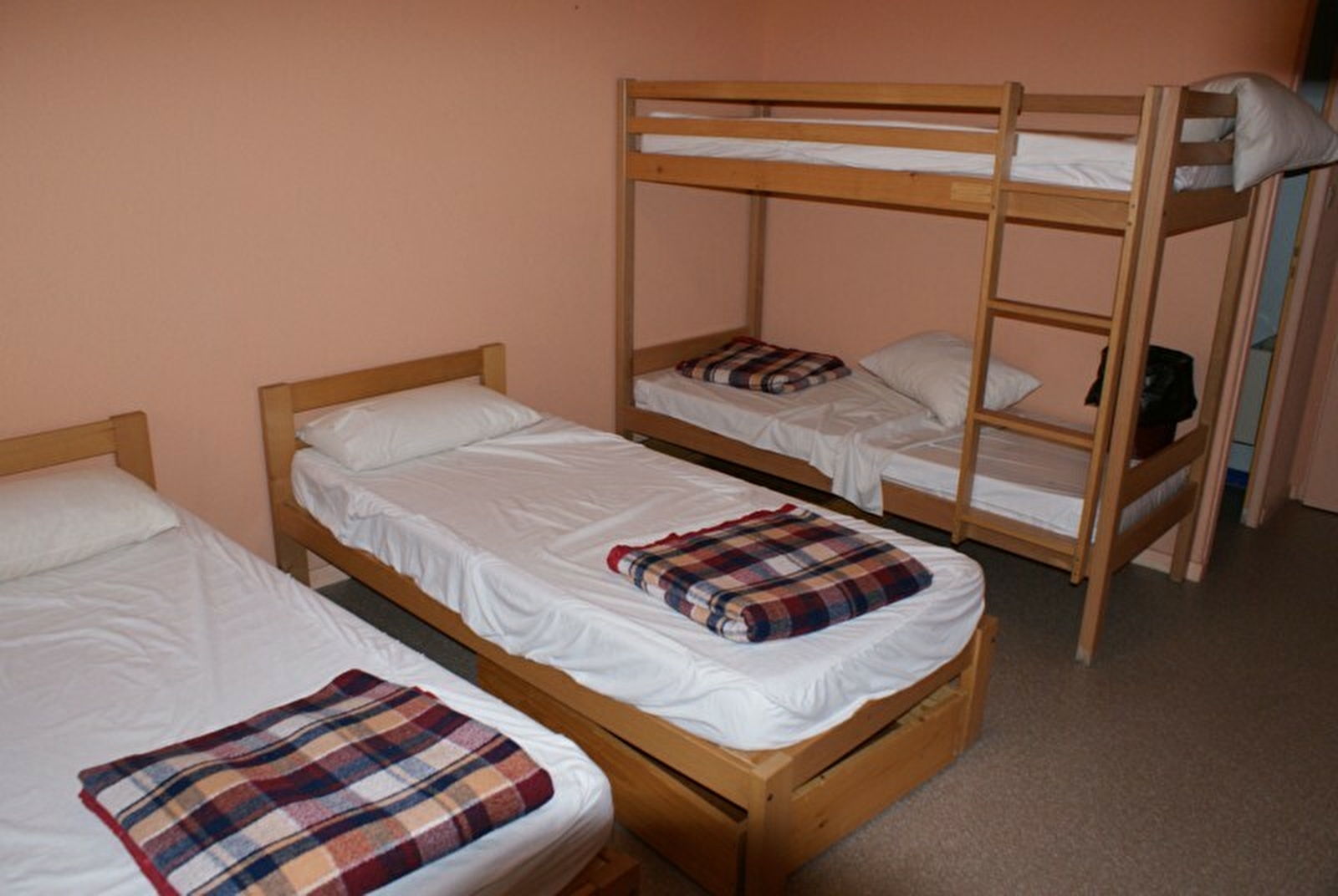 - Au premier étage : 13 chambres de 1 à 5 lits avec une douche dans chaque chambre. Les toilettes sont toujours à proximité immédiate. Un petit coin salon est à votre disposition avec un accès sur le balcon. À ce même étage, une kitchenette peu vous permettre de chauffer des boissons, stocker des denrées au frais...