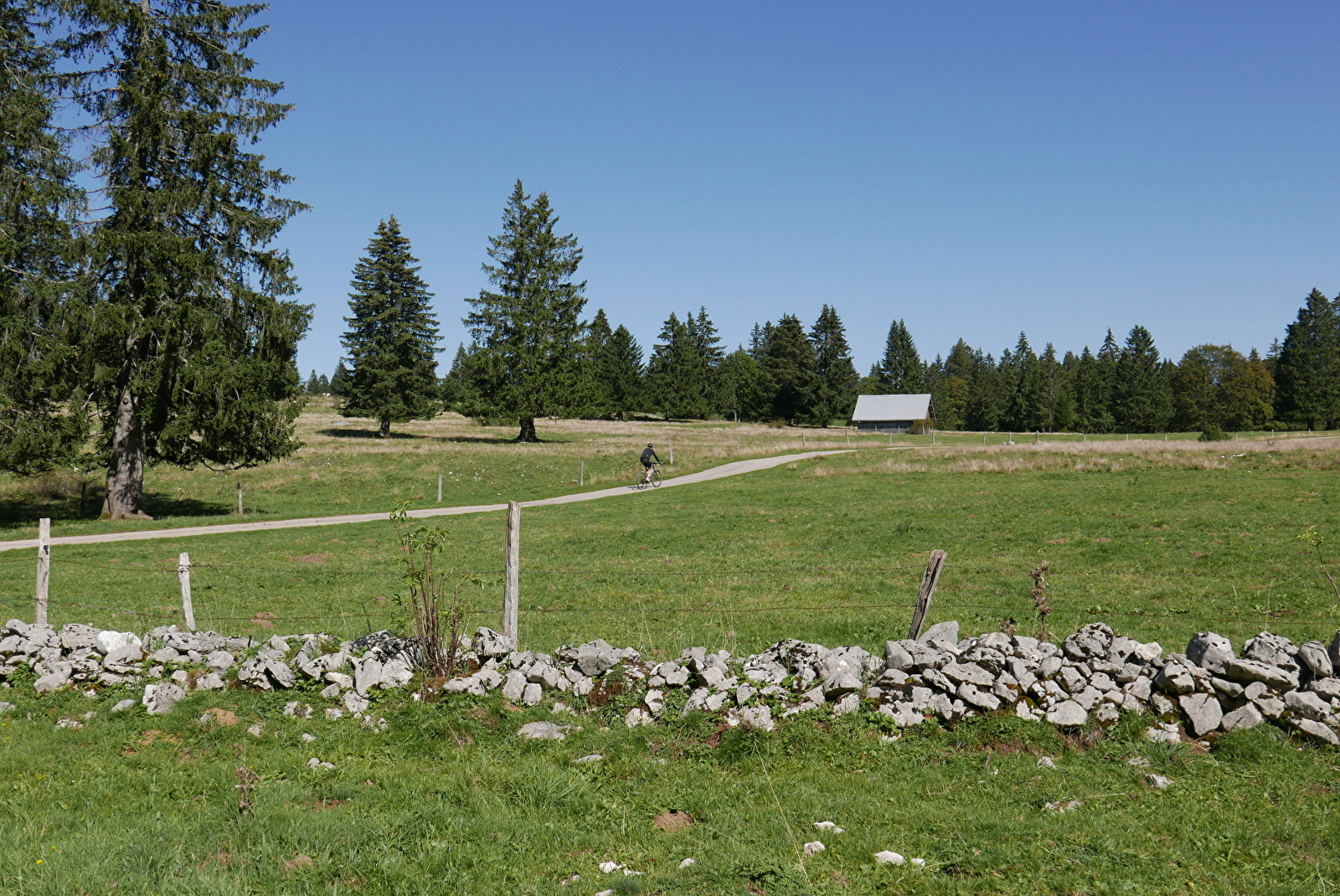 Vous pourrez admirer de superbes panoramas sur les Alpes et vous ravitailler dans les fromageries d’alpage. Ce circuit expert peut se démarrer au village des Fourgs, si vous séjournez dans le coin, ou à la station biathlon des Hôpitaux-Vieux, si vous partez de la vallée.