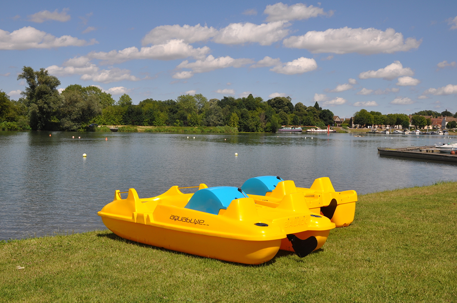 Location de pédalos 2 ou 5 places sur la base nautique de la Plage de Seurre.