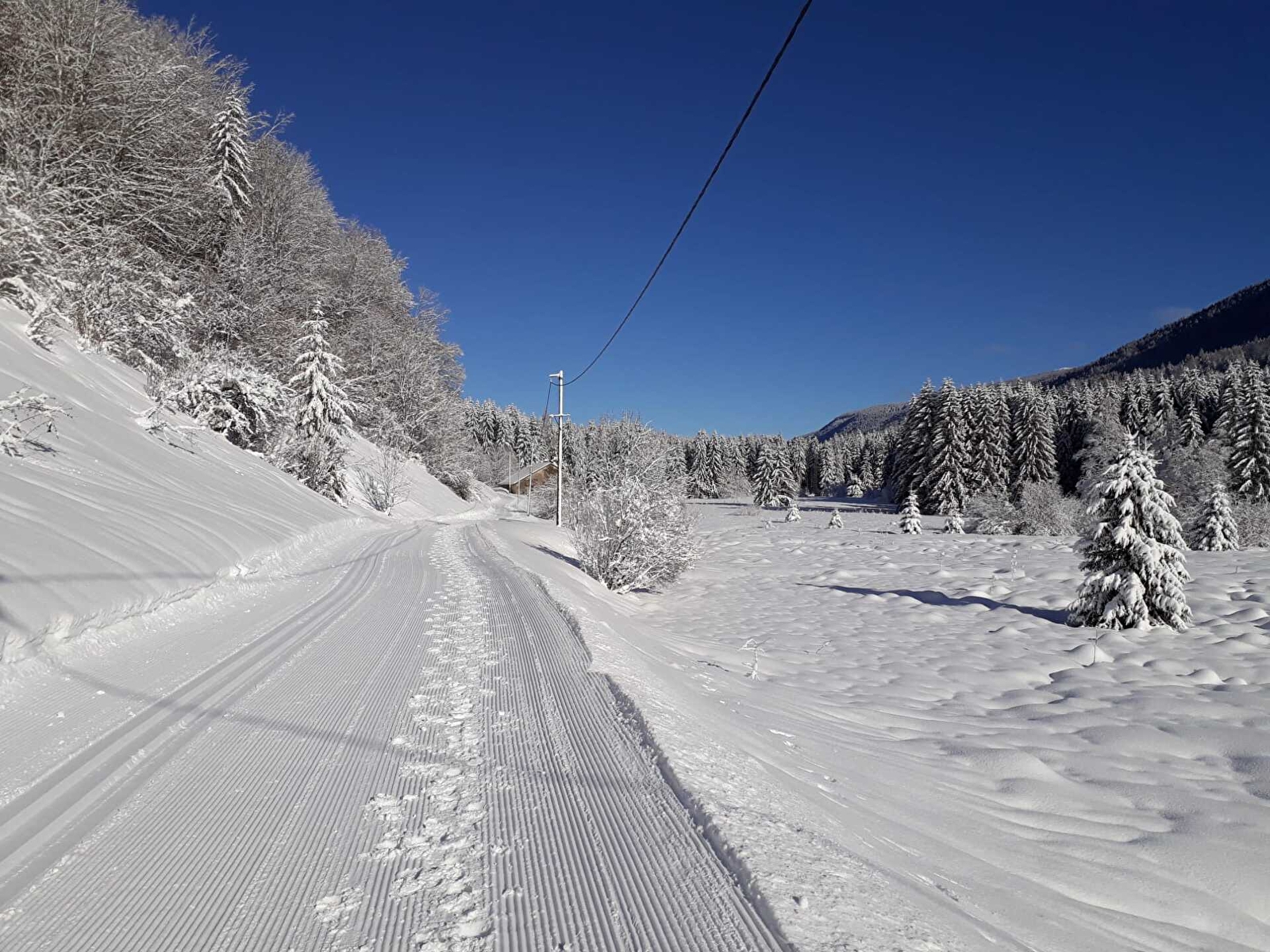 Située à 500 mètres du centre du village, en contrebas du Chalet Louis Marchand, juste en face des terrains de tennis, cette piste multi-activités invite à une belle escapade au cœur des paysages hivernaux de la vallée. Accessible à tous, elle offre l’occasion parfaite de profiter d’une balade tranquille, que ce soit à pied, en raquettes ou à ski de fond. Le parcours alterne agréablement entre berges de rivière, passages en forêt et clairières dégagées, dévoilant toute la beauté de la montagne en hiver. Bonne nouvelle : les chiens sont les bienvenus, à condition d’être tenus en laisse, pour le bien-être de tous et le respect de l’environnement. Ce parcours peut s'effectuer uniquement en période d'eneigement.