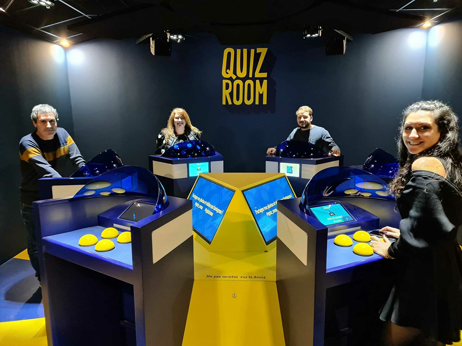 Buzzez pour de vrai sur un plateau mieux qu'à la télé. Le premier quiz immersif où tout le monde peut gagner et où vous rigolerez 100 fois plus que dans votre canap'.