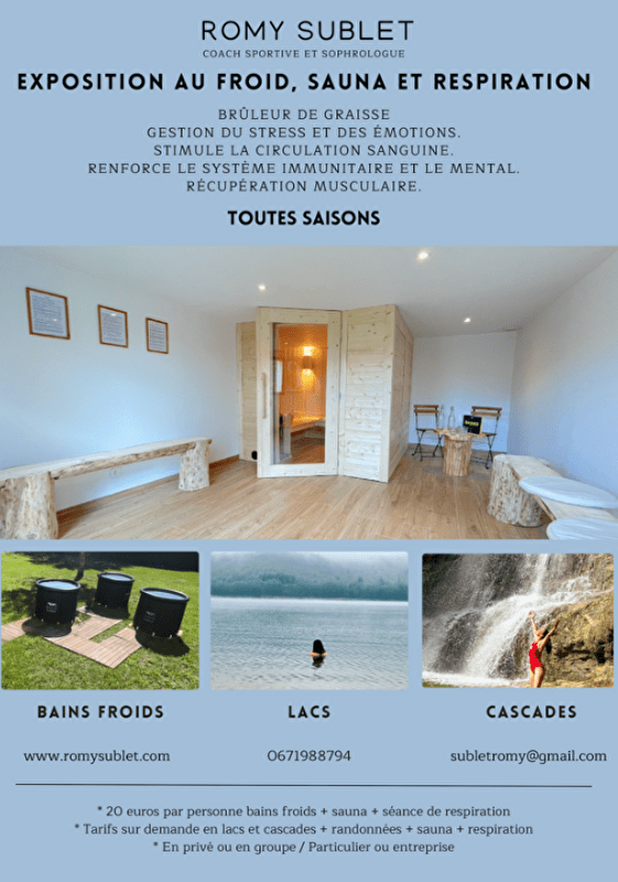 - Des marches avec des baignades en toutes saisons en lacs et en cascades. L'exposition au froid est excellente pour la santé. Un sauna est à disposition. Je vous initie !