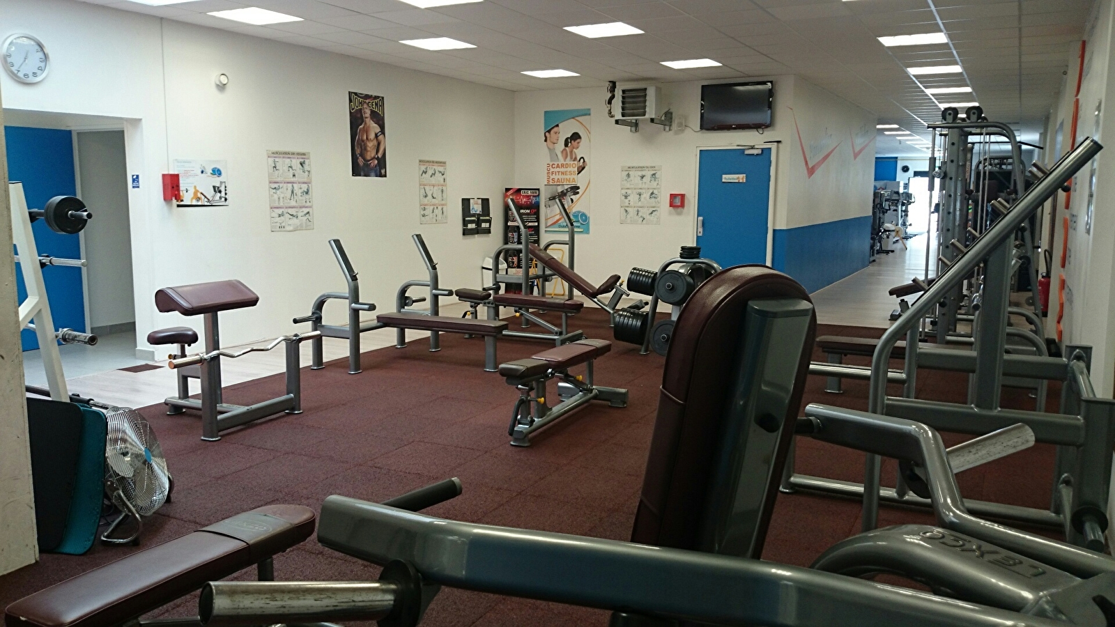 Salle de remise en forme (fitness), coaching, cardio, muscu, saunas, cours collectifs (profs diplômés d'Etat).