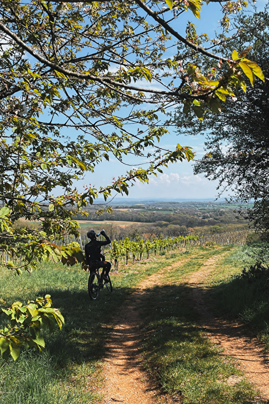 Vous ne trouverez pas cette boucle dans les guides touristiques ! Accessible en TER (à 10 minutes de Besançon) comme par l’EuroVélo 6, ou l’autoroute A36, elle vous fait parcourir les collines agricoles et le patrimoine médiéval du Saint-Vitois : lavoirs, châteaux, vignobles, étangs… Certaines portions peuvent être court-circuitées pour un parcours un peu moins long, notamment au niveau du Moutherot, pour contourner le dénivelé.