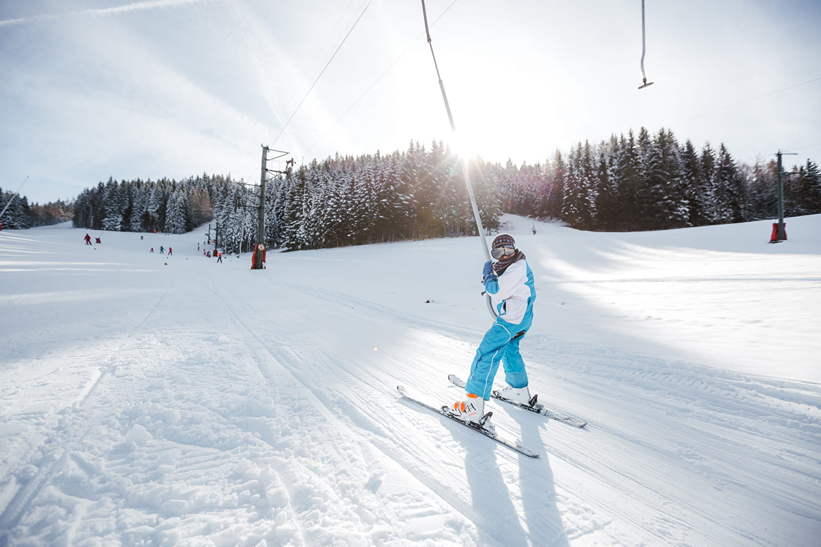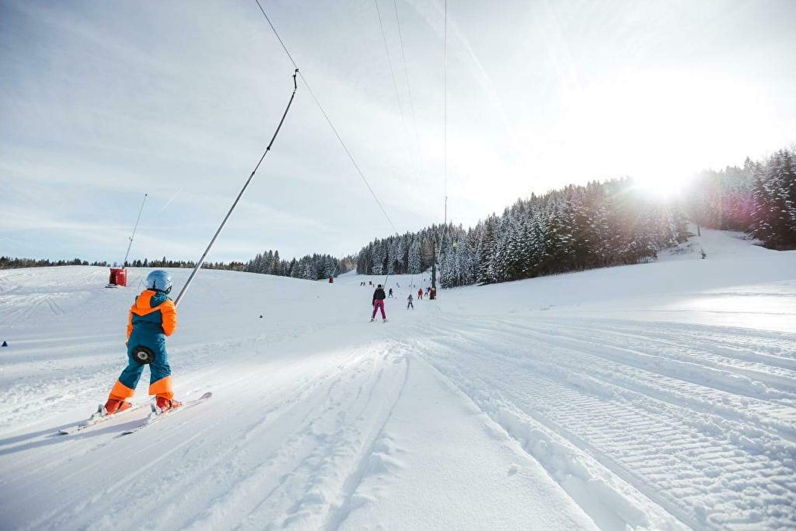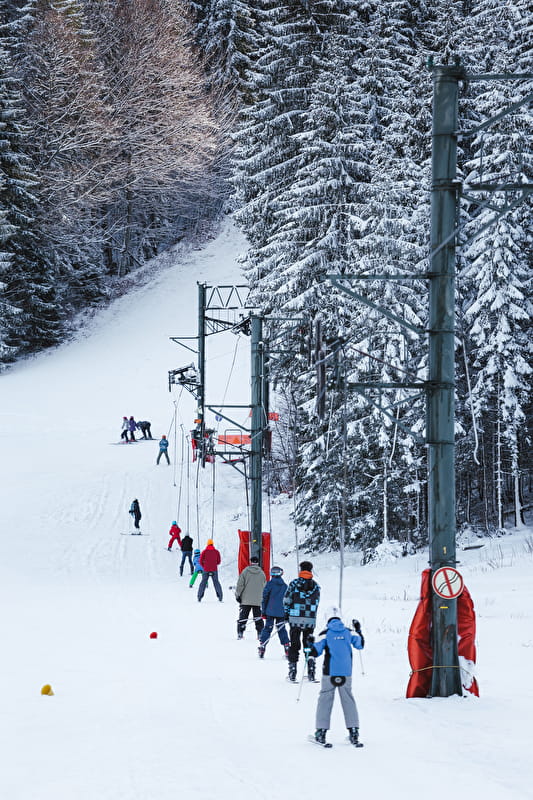 Cette remontée mécanique emmène les skieurs au sommet du massif du Risoux pour offrir ensuite une descente d'1.2 km sur une piste bleue, large et sans difficulté particulière. Attention, ce téléski est considéré comme difficile. Il n'y a pas de limite d'age ou de taille, mais nous vous conseillons fortement de bien évaluer vote niveau ou celui de votre enfant.