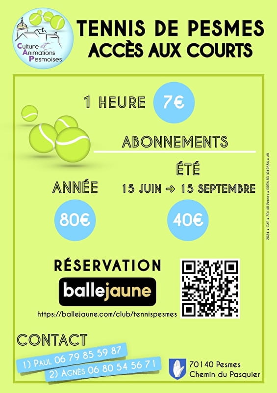 Culture et Animations Pesmoises vous propose de réserver votre court de tennis pour une heure, durant tout l'été ou à l'année.
