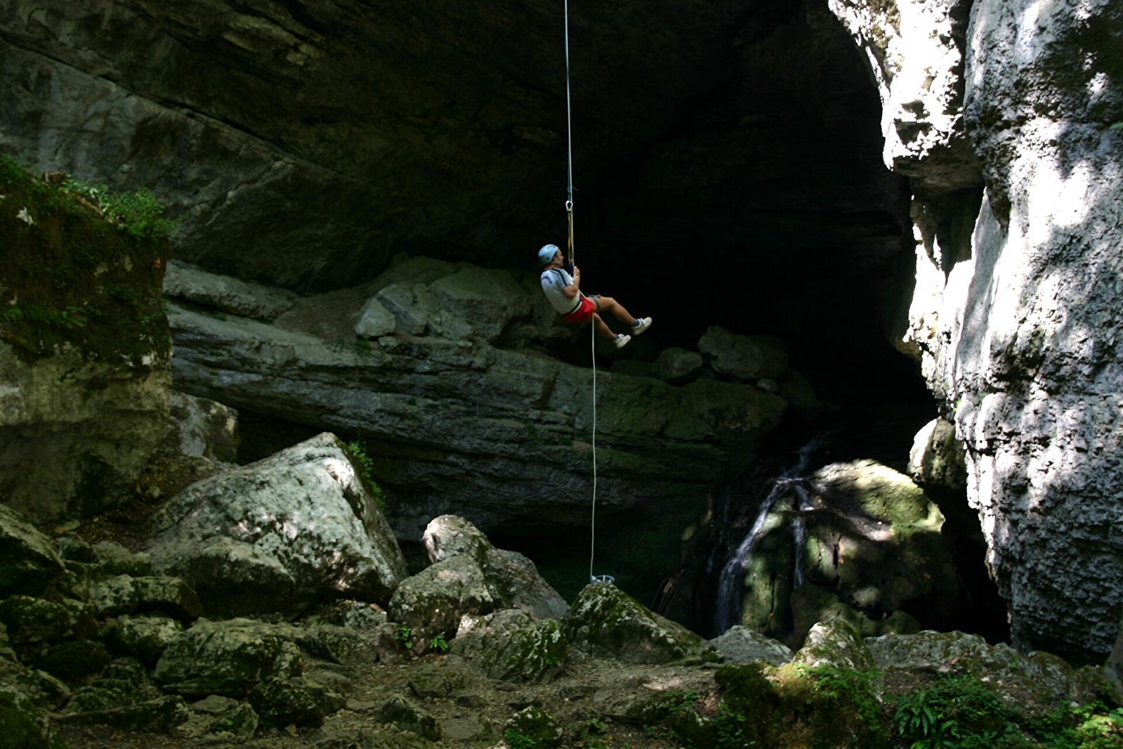 Pour débuter votre aventure, empruntez une galerie qui vous conduit sur une vire rocheuse surplombant les Gorges de la Loue à plus de 40m ! Ensuite, progressez en via cordata avec votre guide, et terminez par une descente en rappel en fil d’araignée !