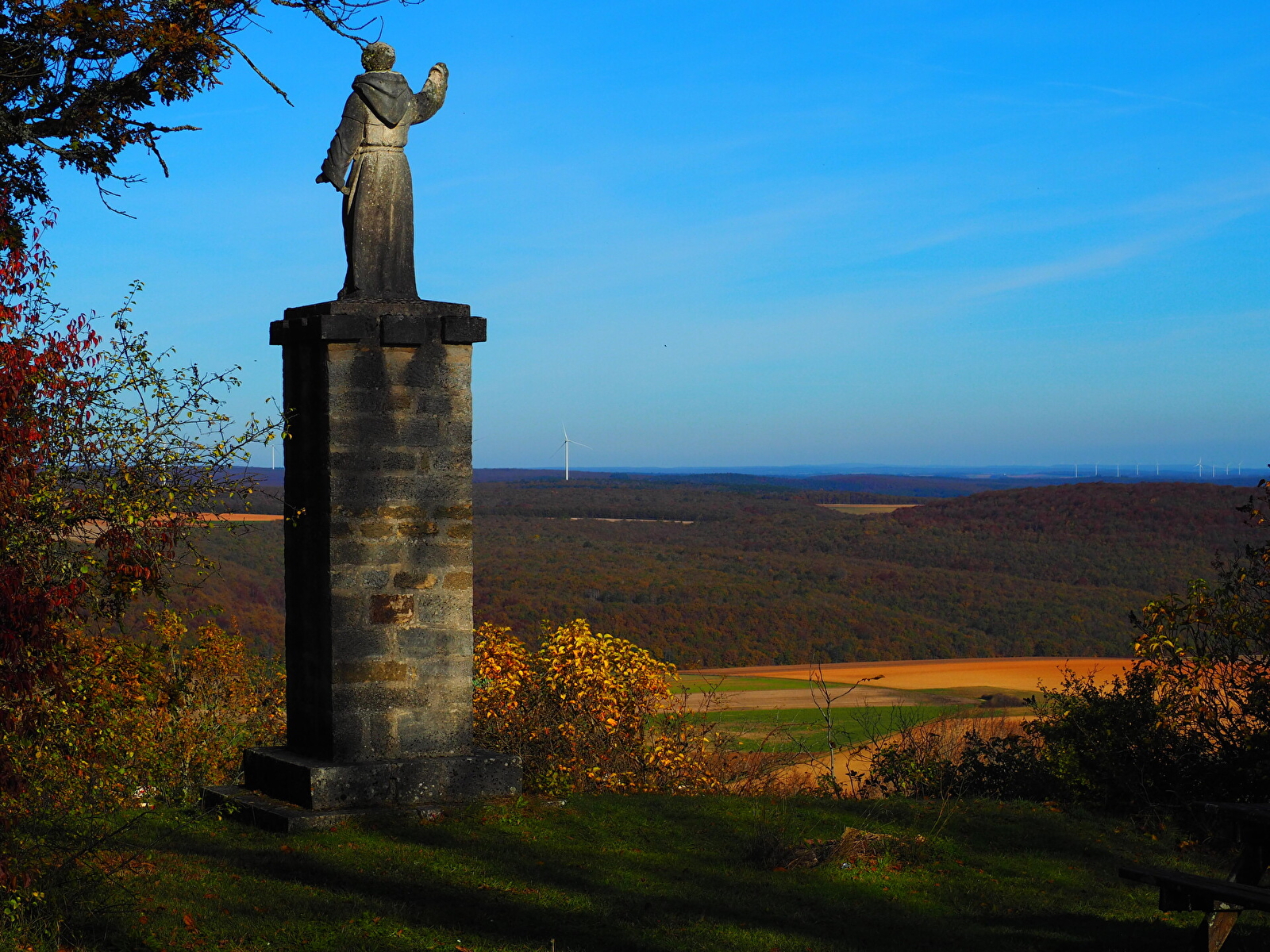 La butte : Follow the path to the top of the mound. The path continues between two rocks, it’s the old entrance of the stronghold. At the top of the mound, there is a chapel and a beautiful panorama.