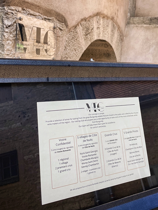 Situé au cœur du village de Vosne-Romanée, le Vosne Tasting Club propose des dégustations privées et thématiques de vins. Dans ce cadre exclusif, vous aurez l’occasion rare de découvrir certains des crus les plus emblématiques de la Bourgogne. L’équipe, passionnée et experte, vous accompagnera pour une expérience unique.