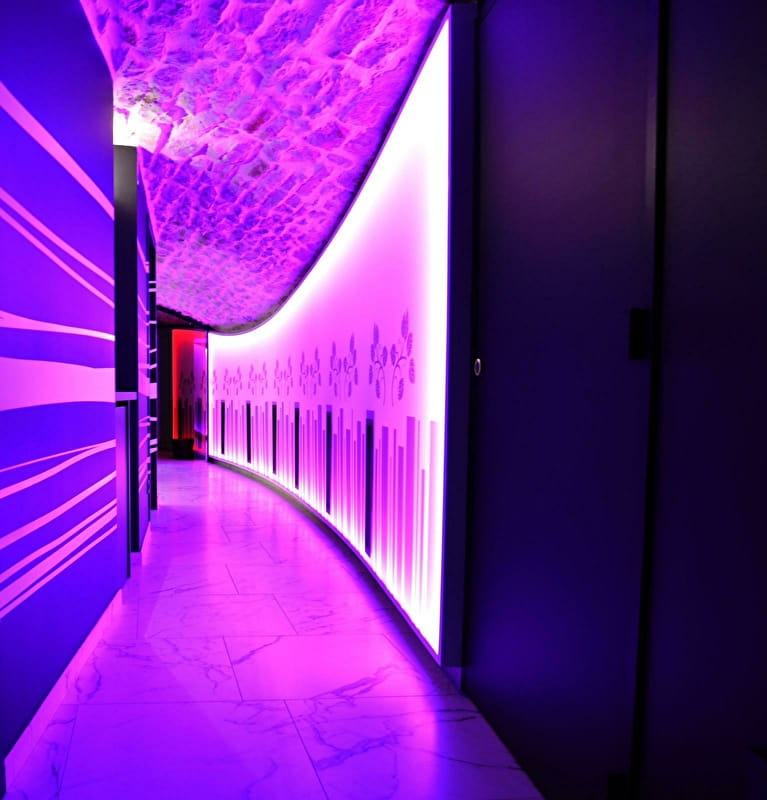 Sous l'Atrium, vous restez proche de la nature avec les métamorphoses de l'eau accompagnées de senteurs, de lumières, de sons suscitant d'extraordinaires évocations de rêves et de détente.