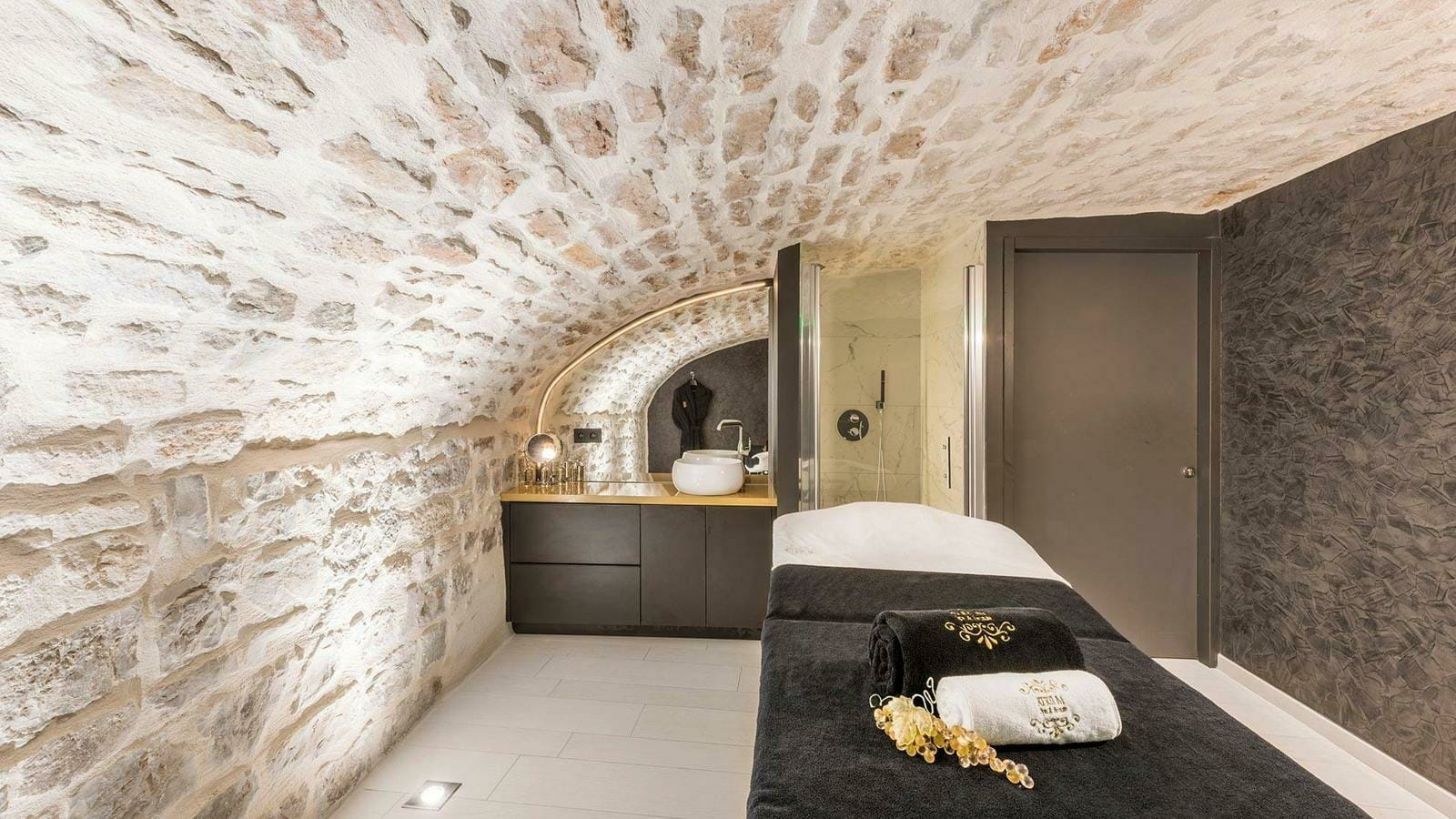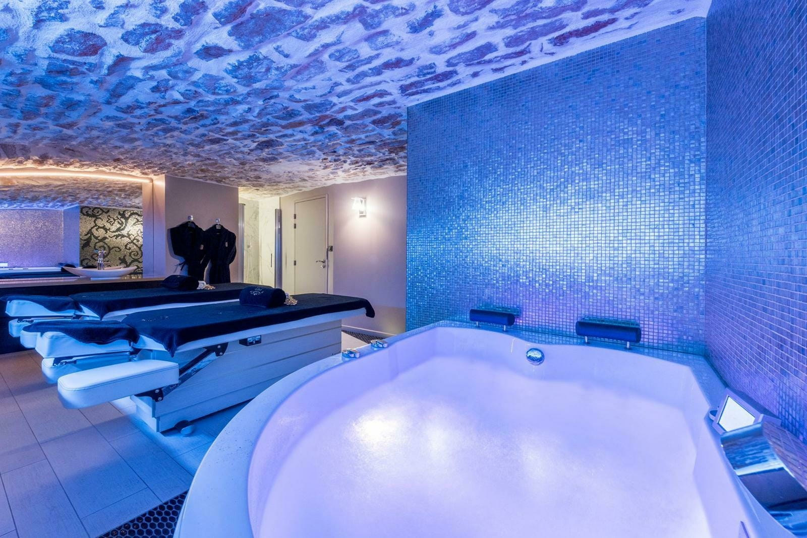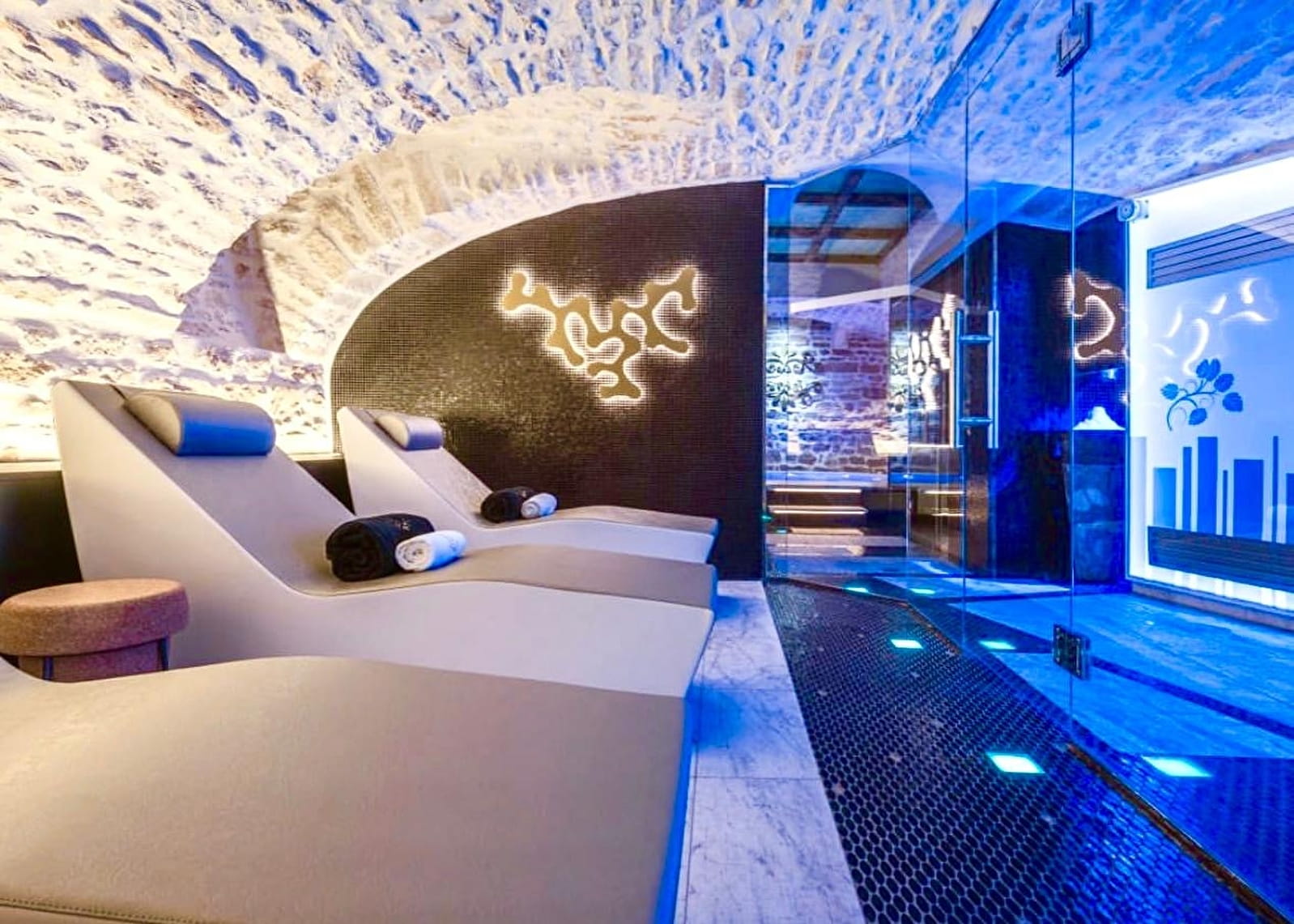 Hammam, sauna finlandais, fontaine de glace, douche à expérience, bain à remous, salle de relaxation.