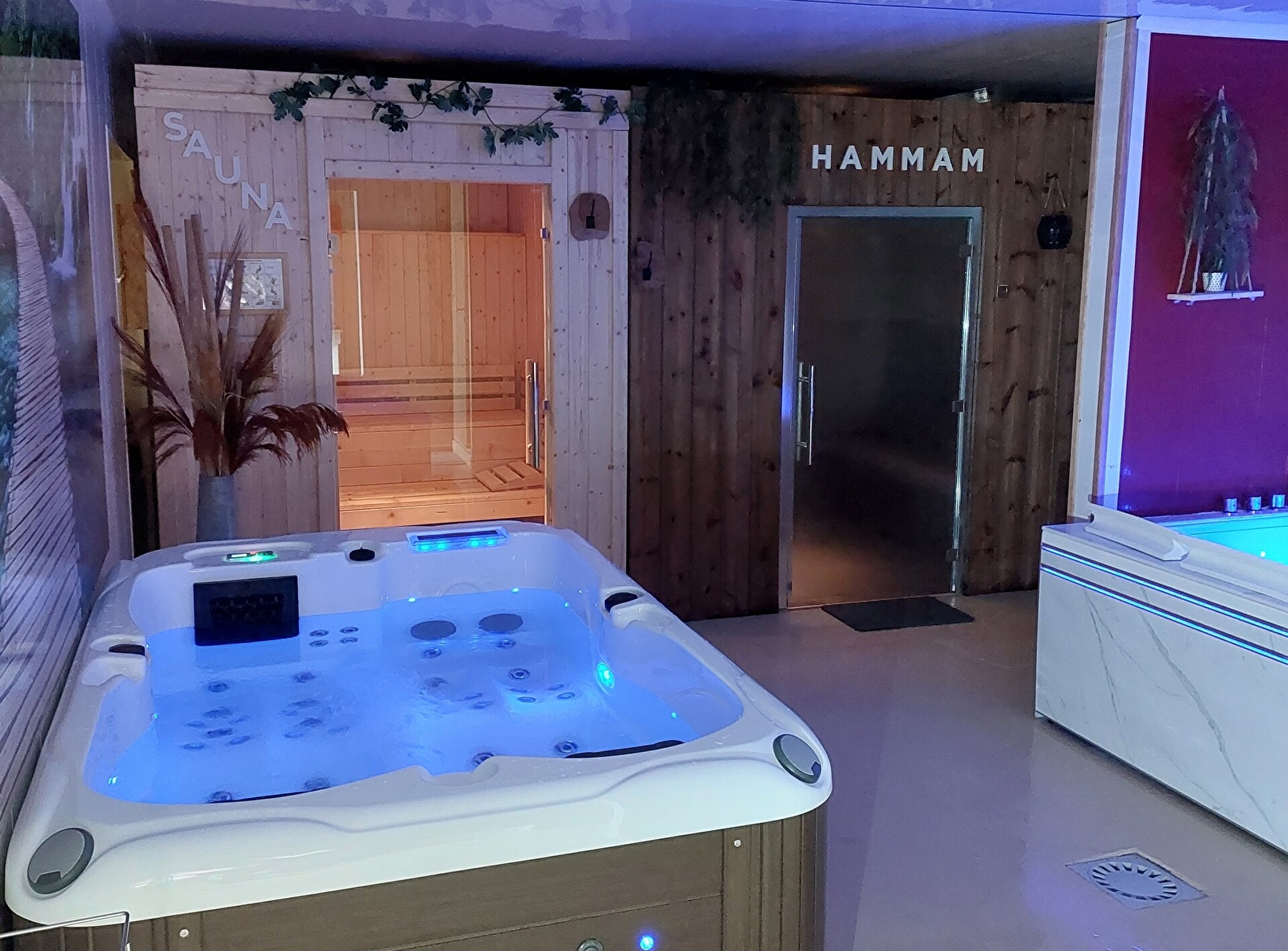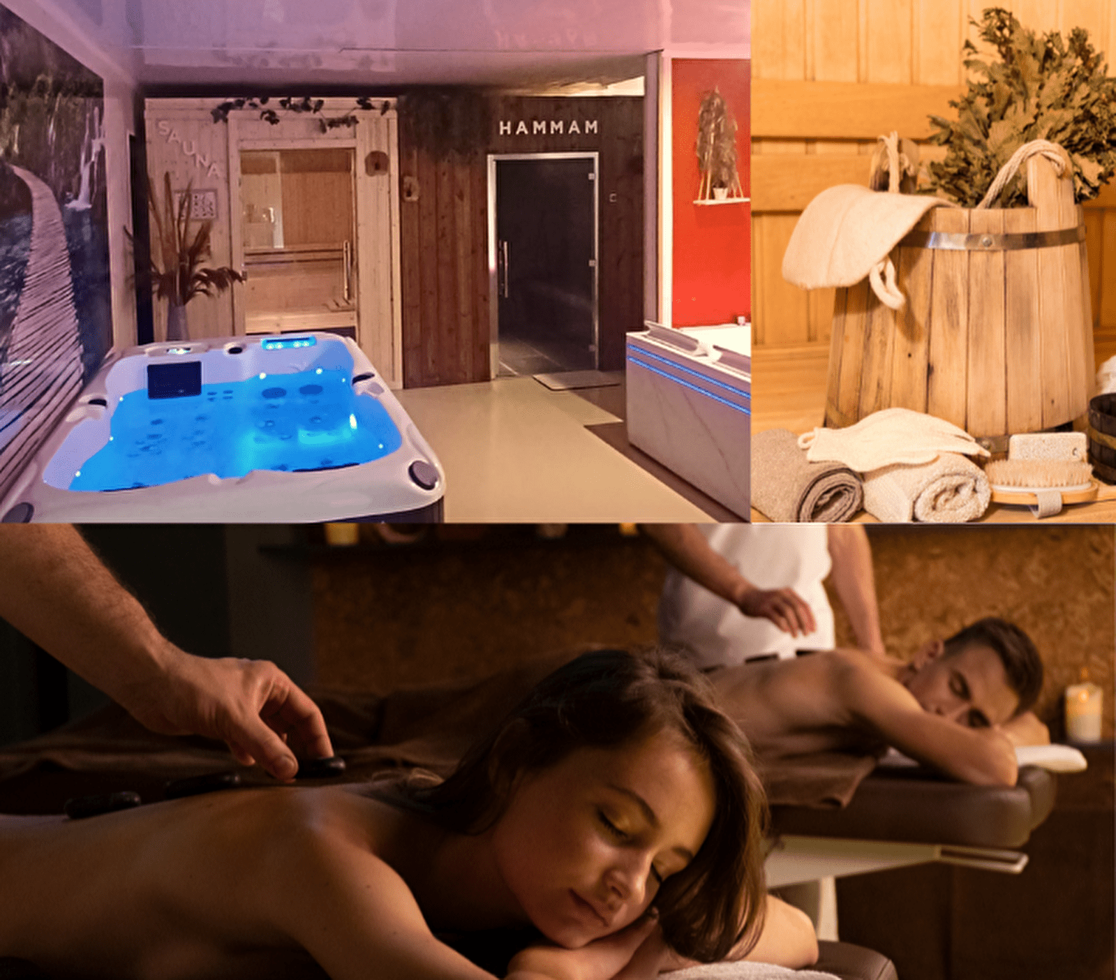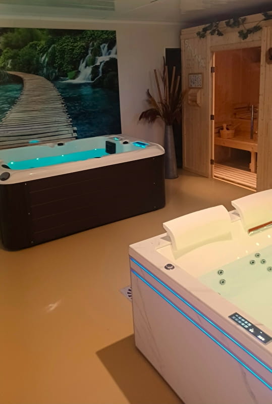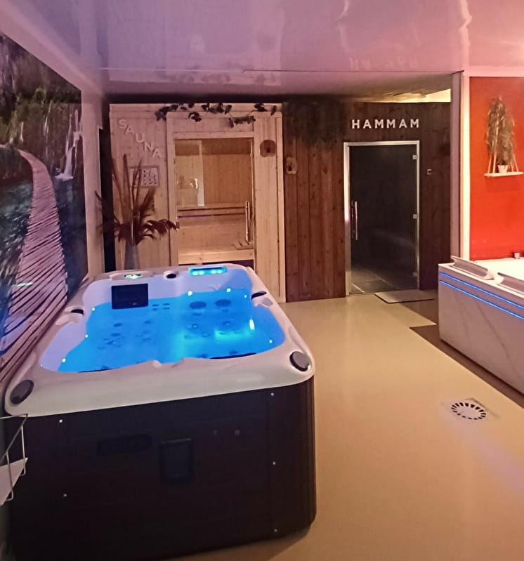 Plonger dans un espace cocooning de 120 m², une ambiance douce et chaleureuse équipé d’un spa avec système balnéothérapie et réflexologie plantaire, d’un sauna Finlandais en vapeur sèche, d’un hammam oriental en mosaïque bain de chaleur humide, et d’un bain balnéothérapie en eau froide.