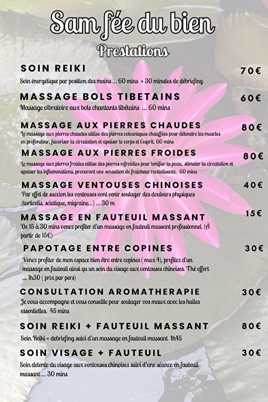 *J'utilise le Reiki usui, l'aromathérapie, la sonothérapie et le ventousathérapie pour vous soulager.