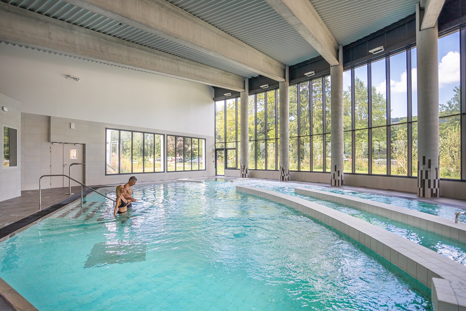 Profitez de l'espace aqua-détente pour vous offrir un moment de bien-être : piscine thermale à 32° équipée d'un jacuzzi et de lits bouillonnants, geysers, cols de cygne, jets hydro-massants et nage à contre courant.