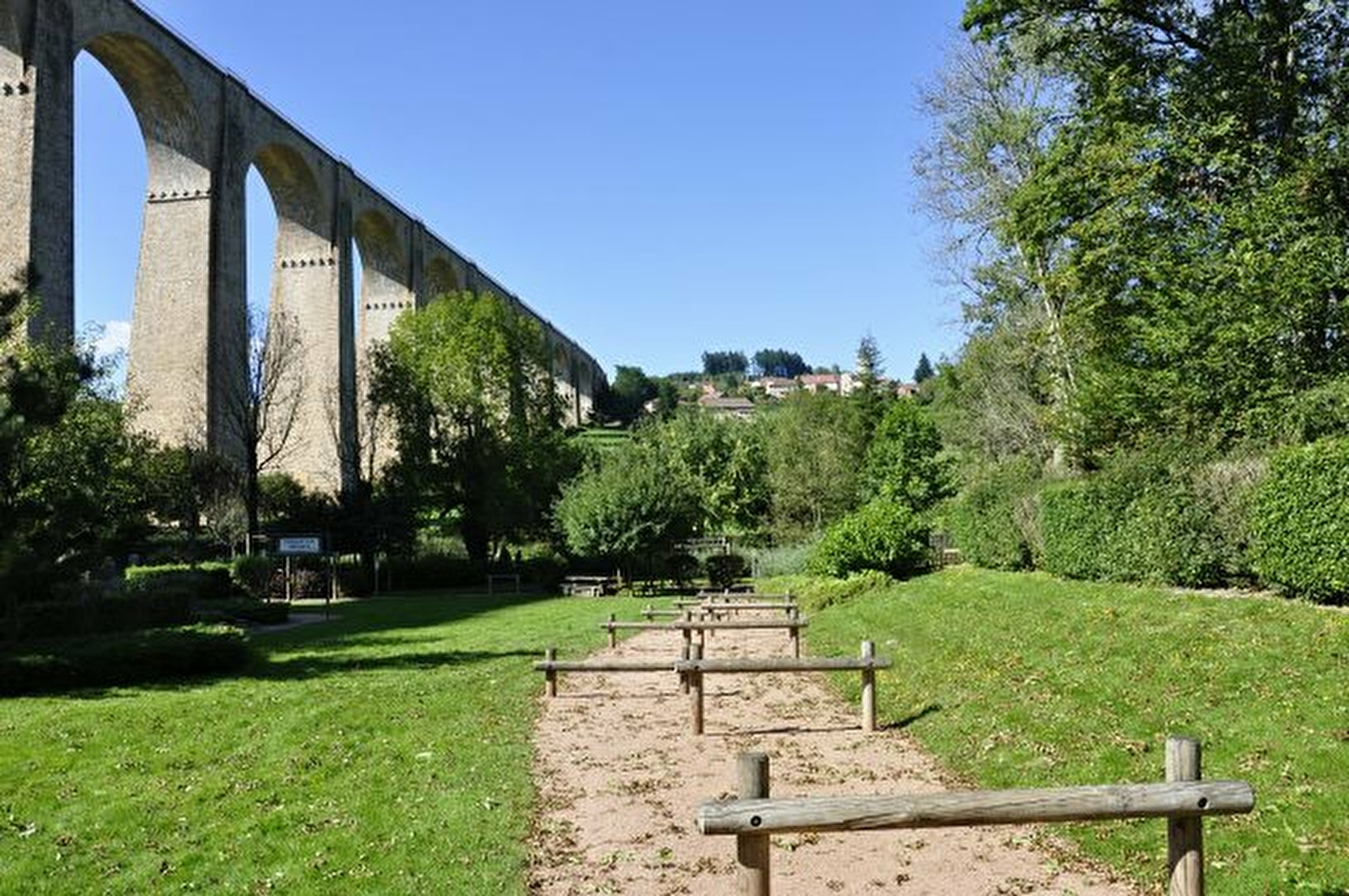 Aire de pique-nique située au pied du viaduc de Mussy-sous-Dun. Tables de pique-nique, aire de jeux pour les enfants, parcours santé, pêche en rivière, wc.