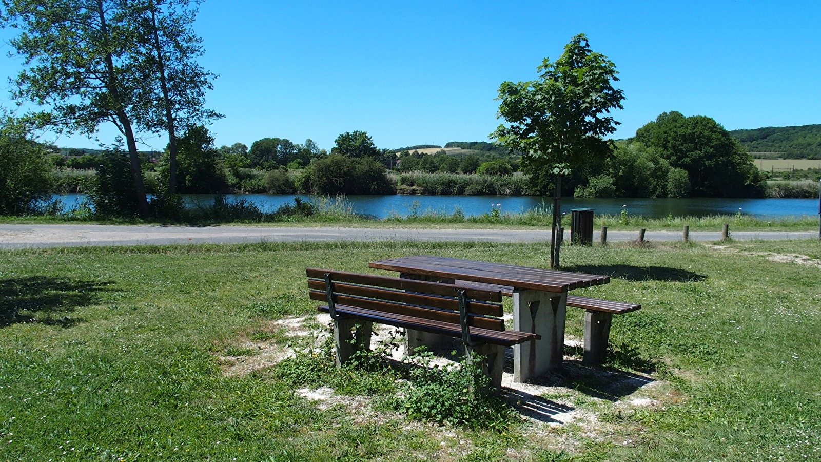L'aire de pique-nique se situe sur les bords de l'Yonne.