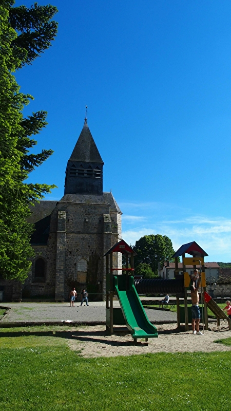 Aire de pique-nique situé derrière l'église. aire de loisirs pour enfants, le long de l’église (côté nord).