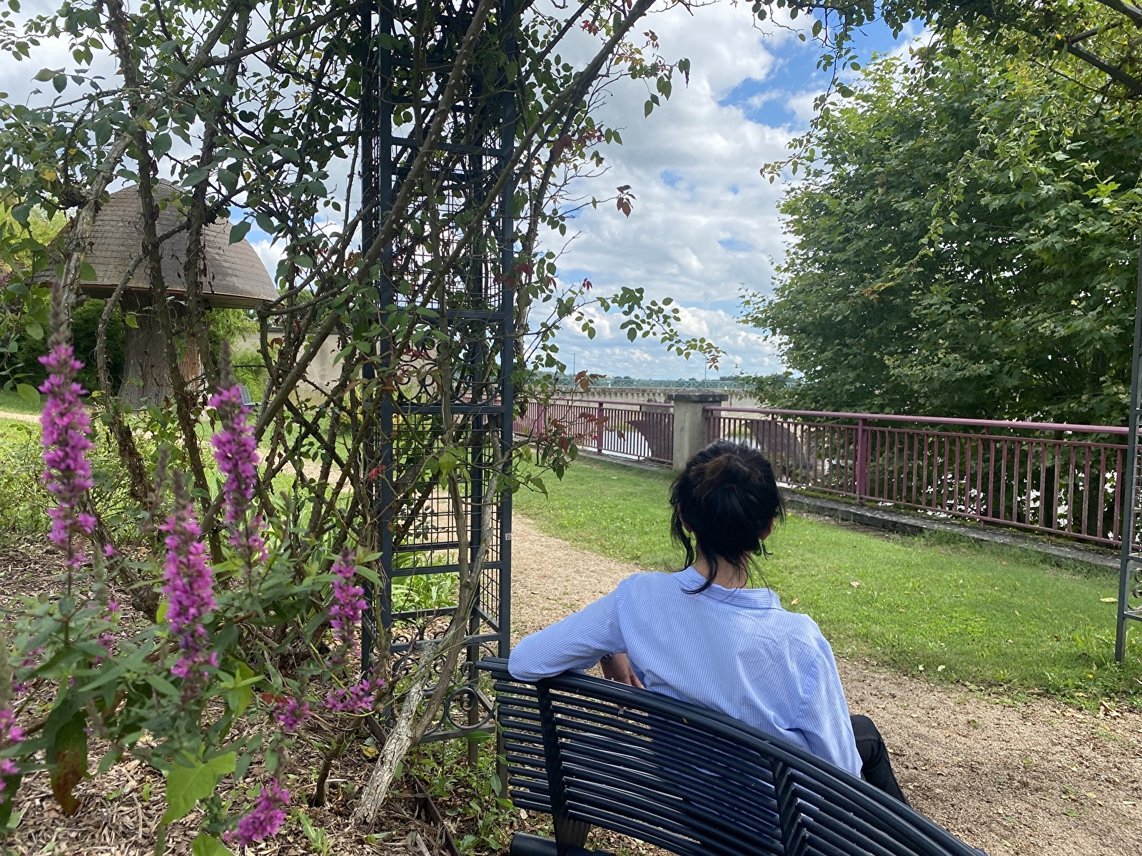 A quelques pas du pont-canal, avec vue imprenable sur la Loire, pour une pause ou un pique-nique dans un décor fleuri et bucolique.