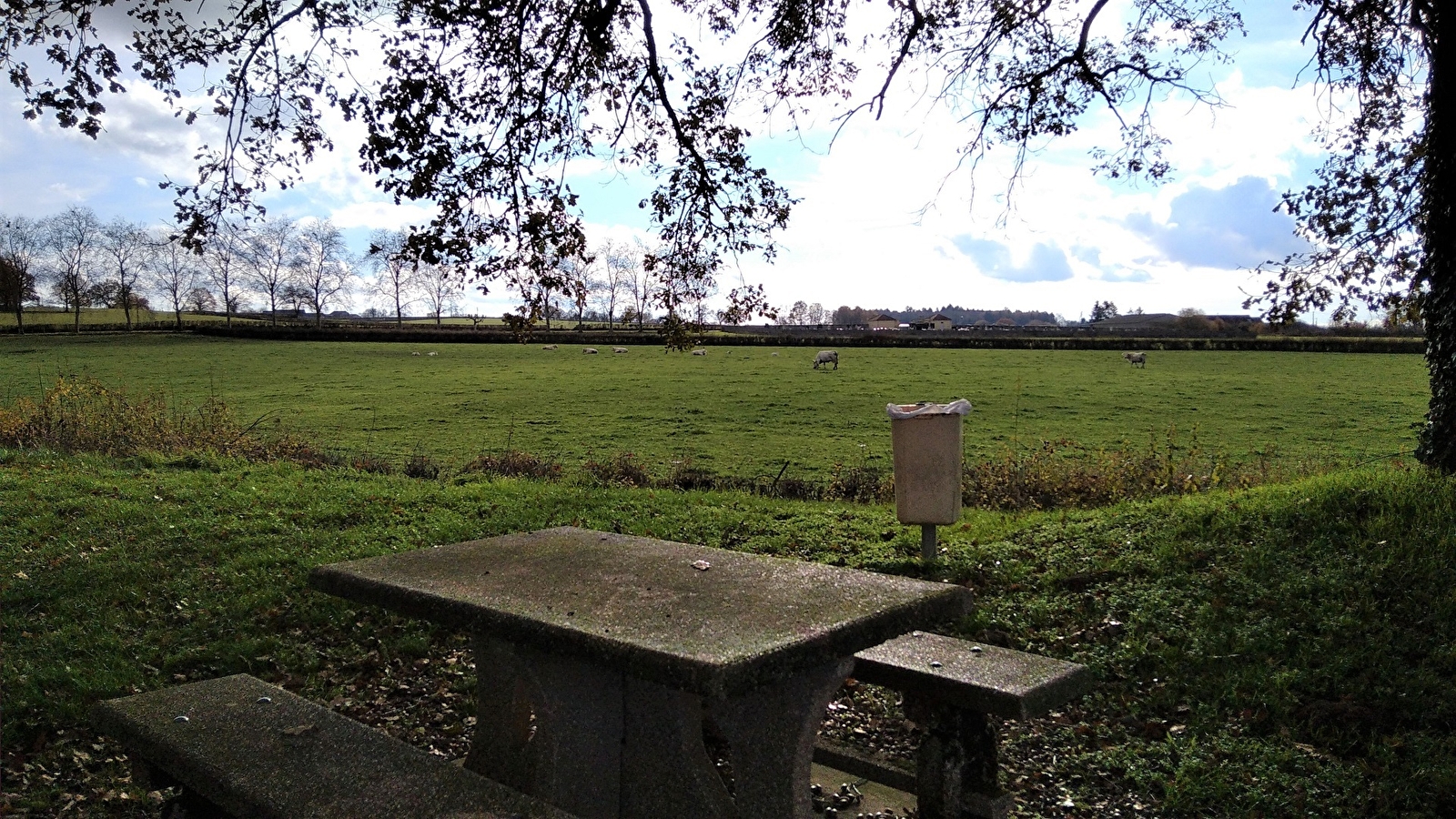 L'aire de pique-nique est située au bord du canal du Centre, à proximité de la halte nautique. Ombragée, la vue est double: d'un côté le bocage et de l'autre le Canal du Centre, reliant Chalon-sur-Saône à Digoin.