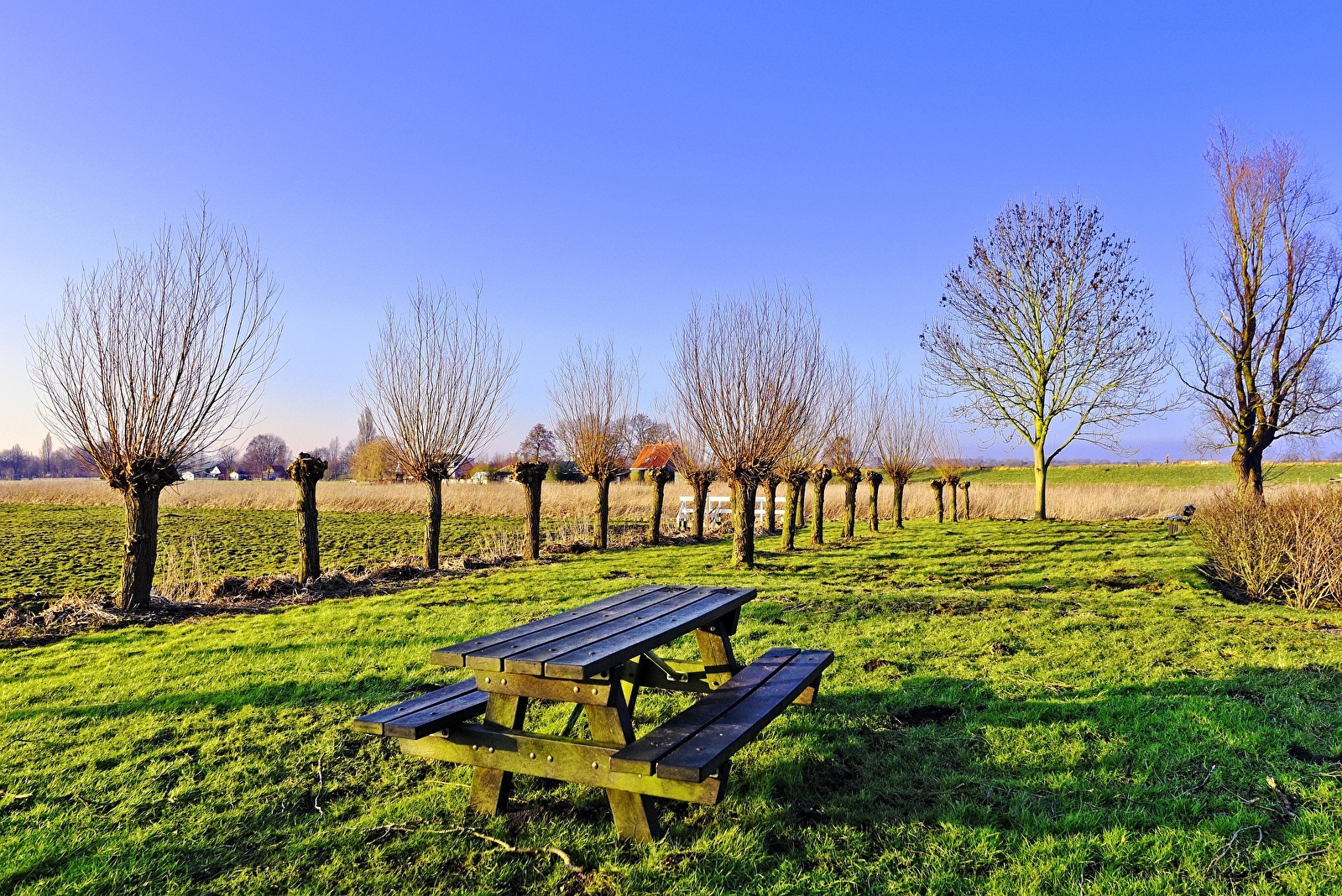 Quelques tables en pierre sont à votre disposition, ainsi qu'une aire de jeux sous les arbres.