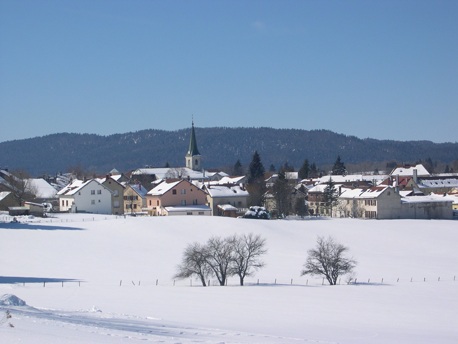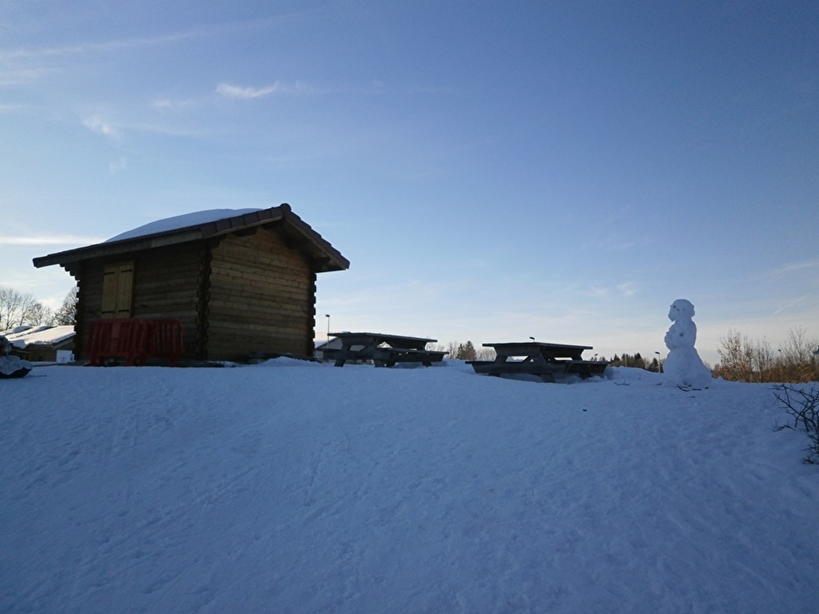 Aire de pique-nique au départ des pistes de ski, itinéraire raquettes et piste de luge de Saint-Laurent en Grandvaux.