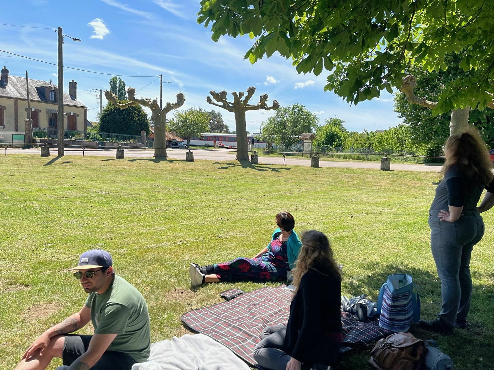 Aire de pique-nique au pâtis de Villiers-Saint-Benoît, avec aire de jeux pour les enfants.