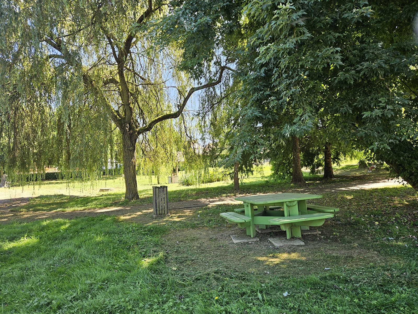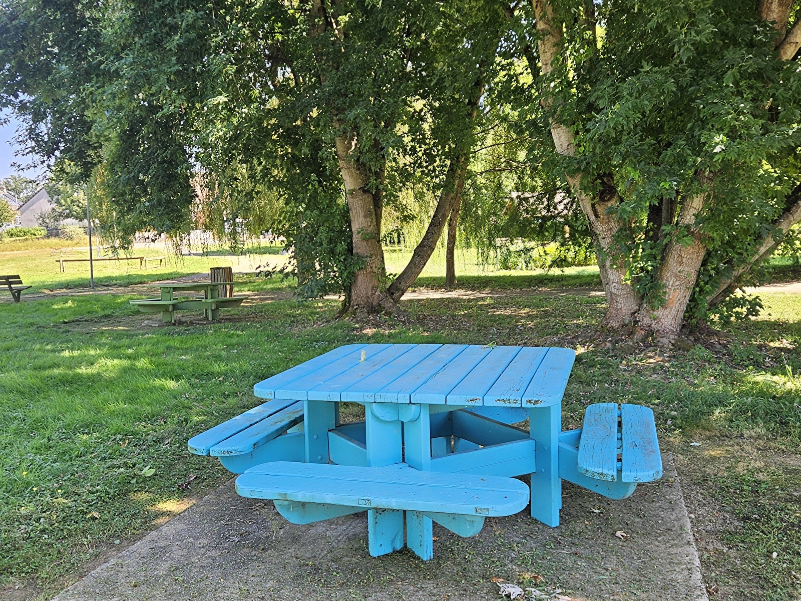 Aire de pique-nique ombragée avec jeux pour enfants et wc publics