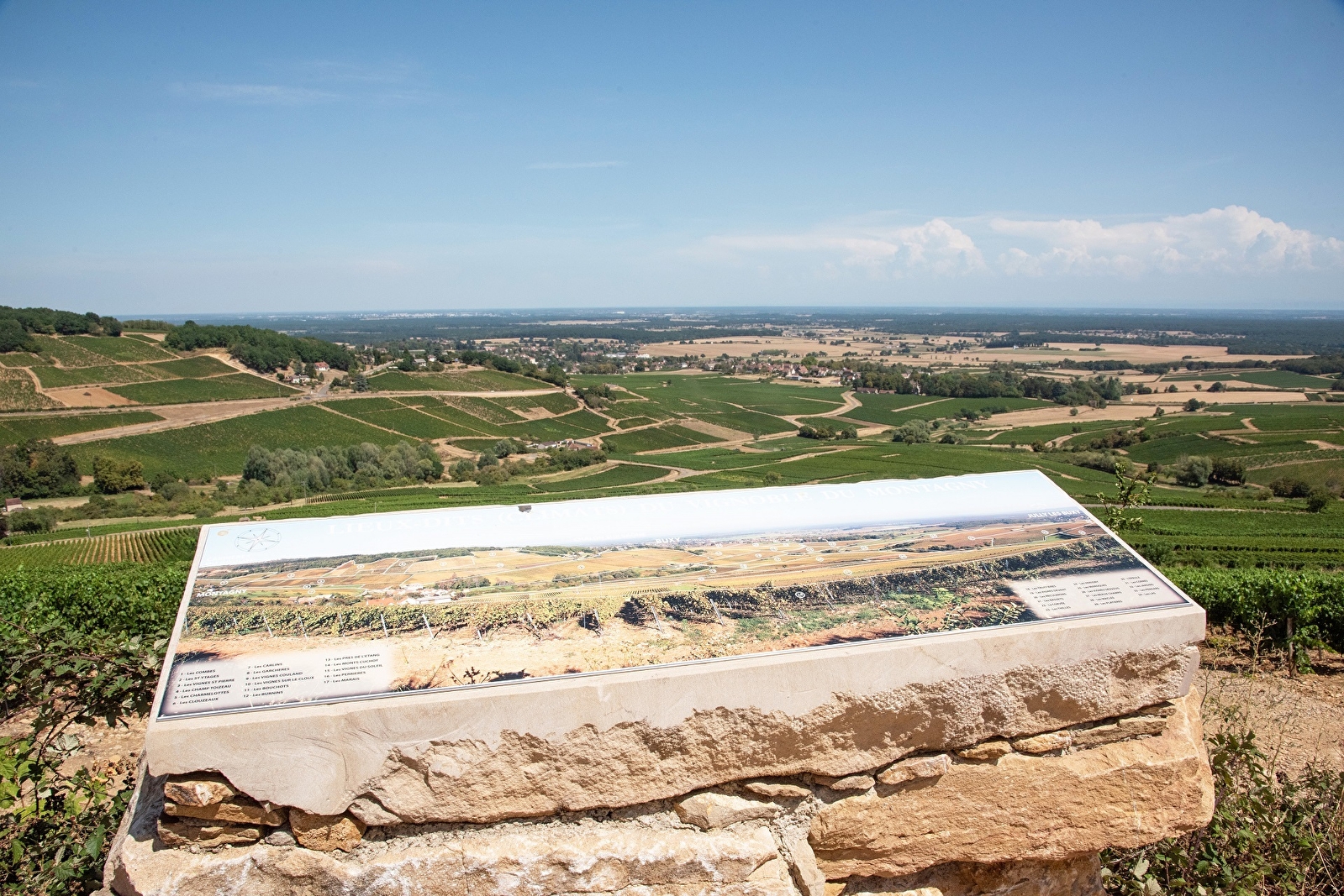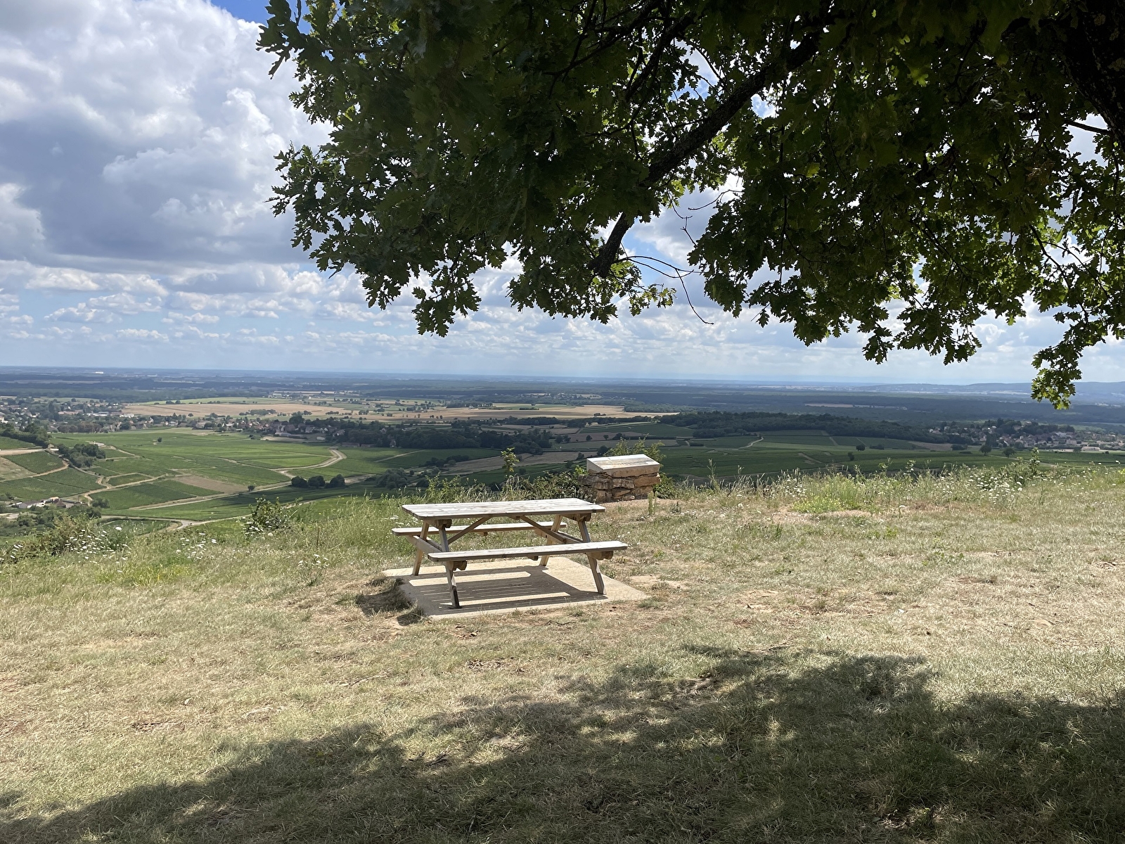 Cette aire de pique-nique est située à proximité du sentier viticole du Montagny. Très jolie vue sur le vignoble de la Côte Chalonnaise.