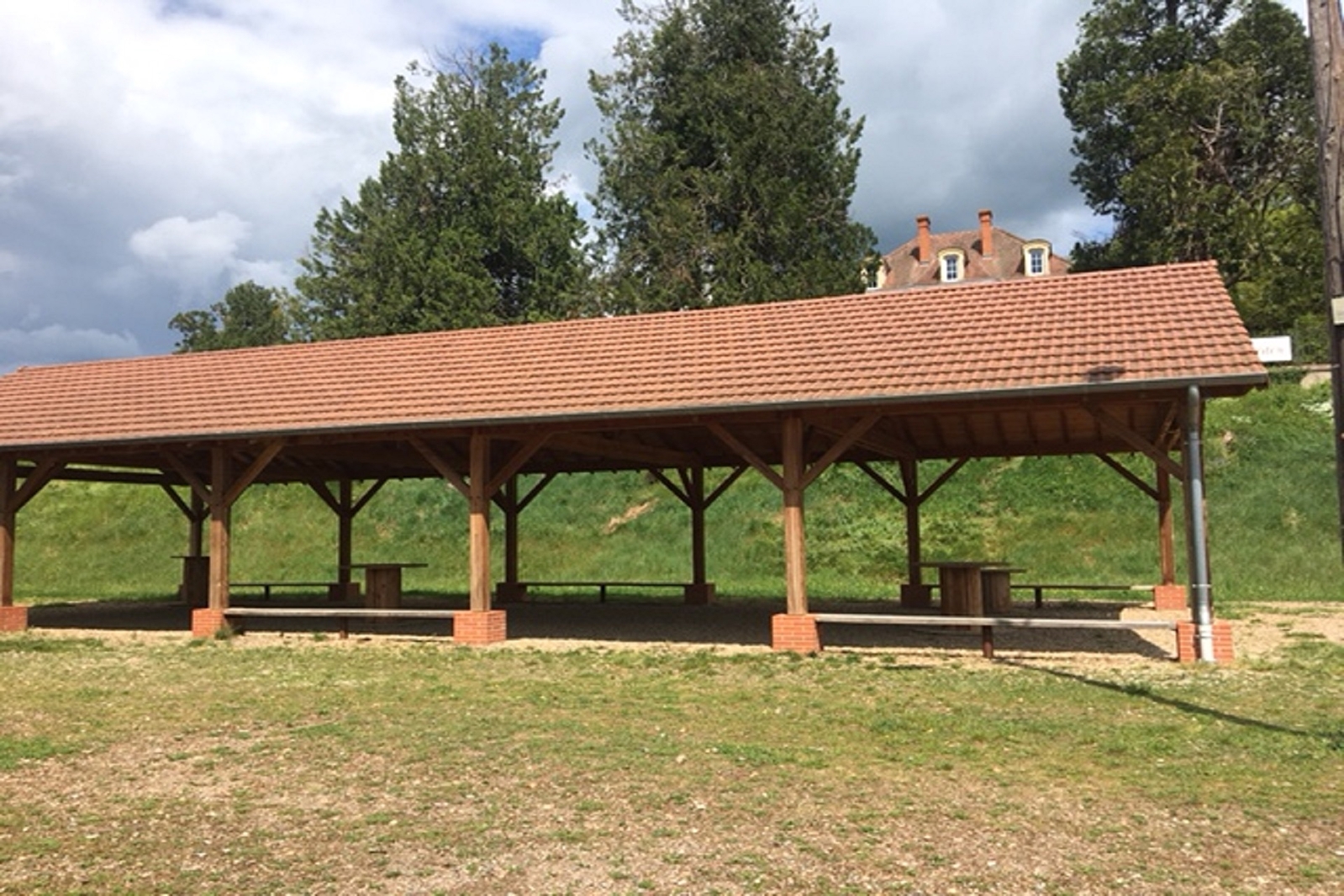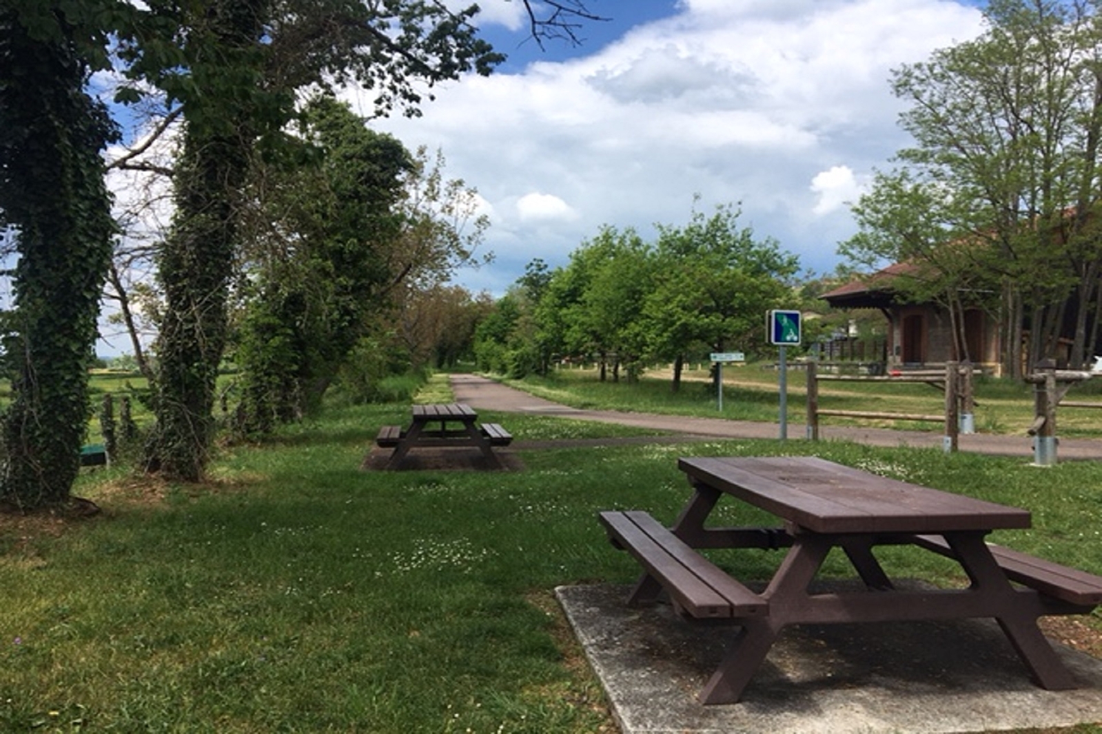 Aire de pique-nique à l'ancienne gare (au départ de la voie verte) avec table, bancs, sanitaires et point d'eau.