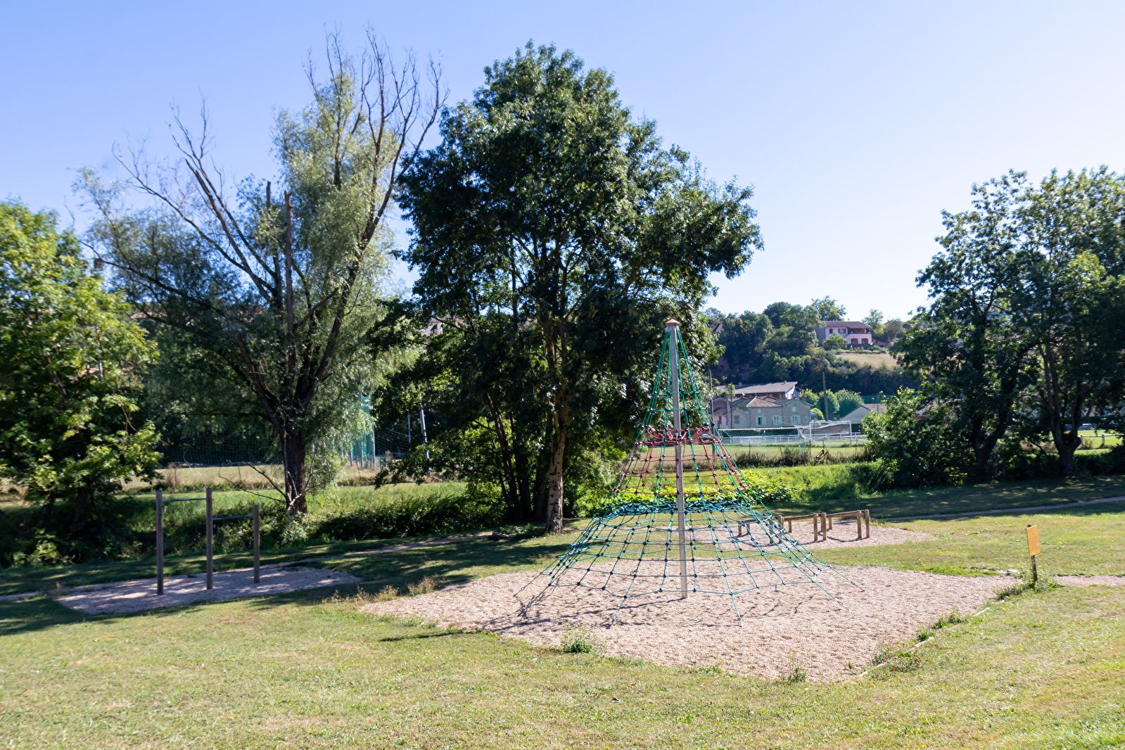 Aire de pique-nique située au bord de la voie verte. Jeux pour enfants, table de pique-nique et petit parcours ombragé; parfait pour passer une après-midi en famille.