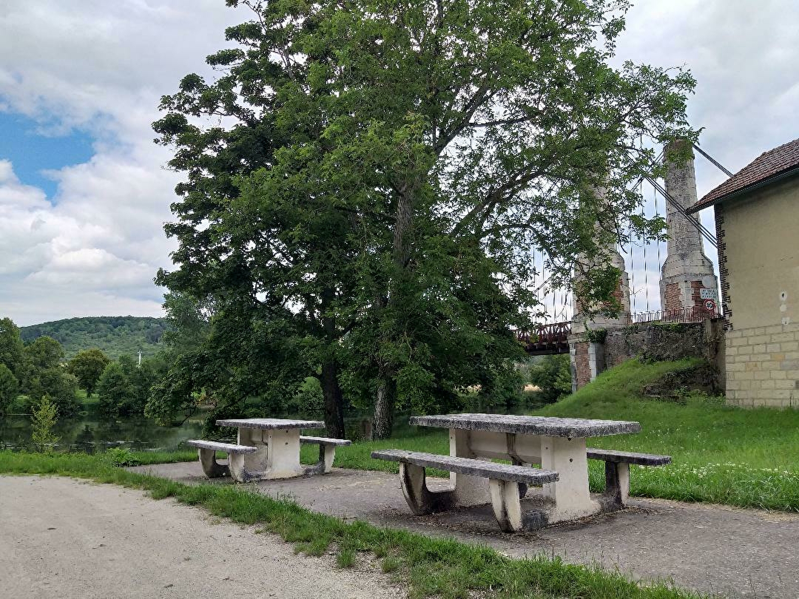 Aire de pique-nique située au bord de l'Yonne à côté du pont suspendu de Cézy. Accessible en voiture. Grand parking en contre-bas du pont avec accès à l'Yonne pour les bateaux de pêcheur. A 300 mètres environ de la Véloroute, sortie Saint-Aubin-sur-Yonne.