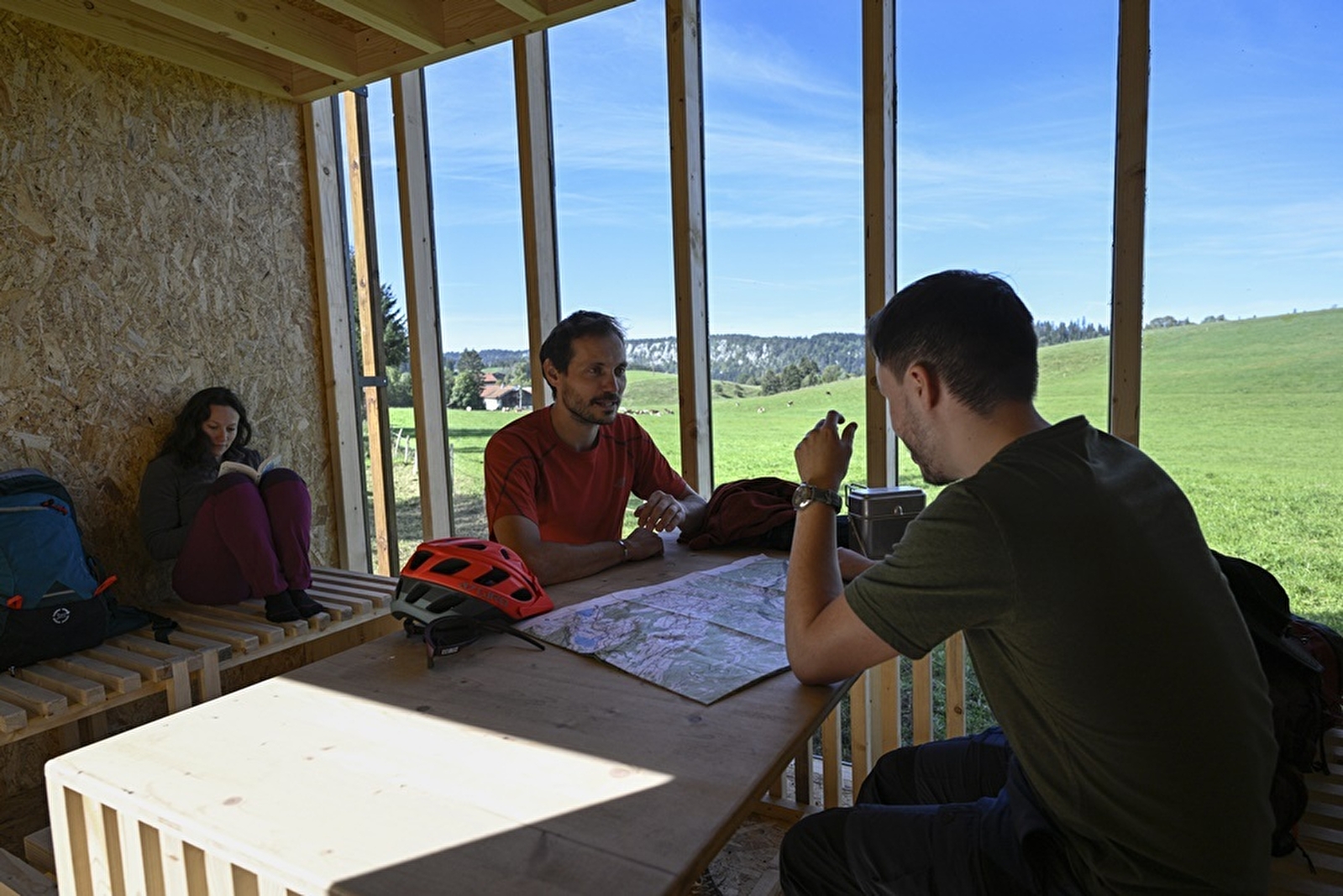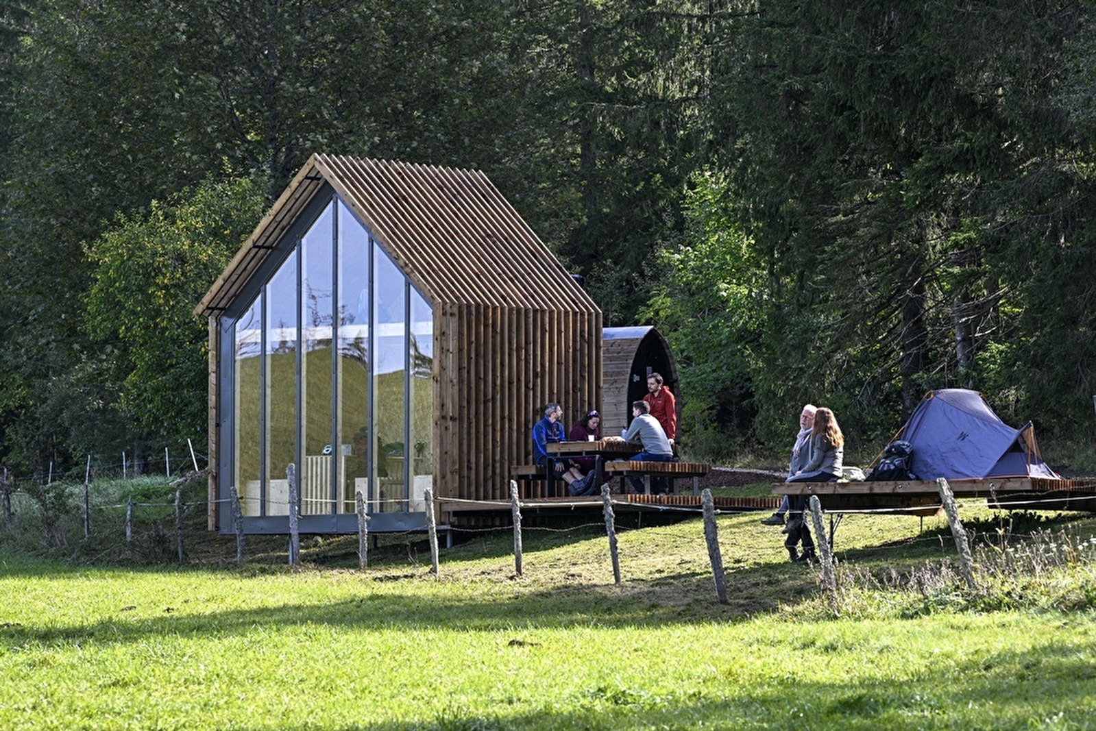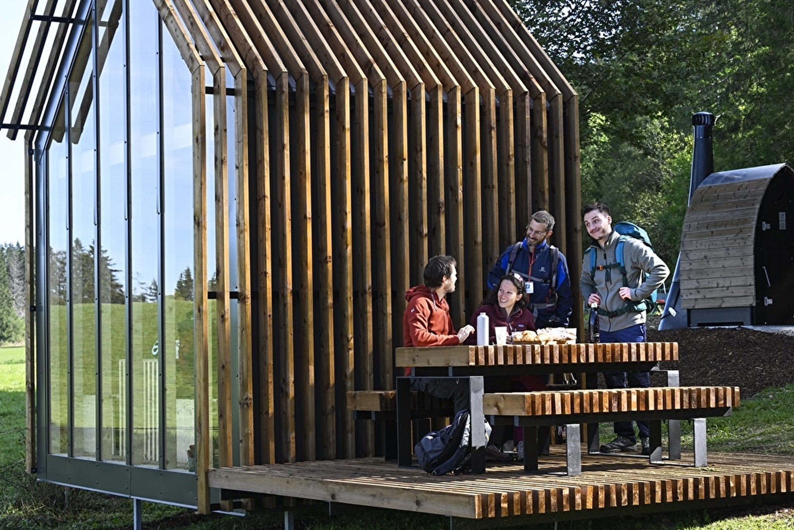 Pensé pour un usage 4 saisons, l'espace de convivialité offre un espace couvert aux randonneurs désireux de faire une pause ou s'abriter.