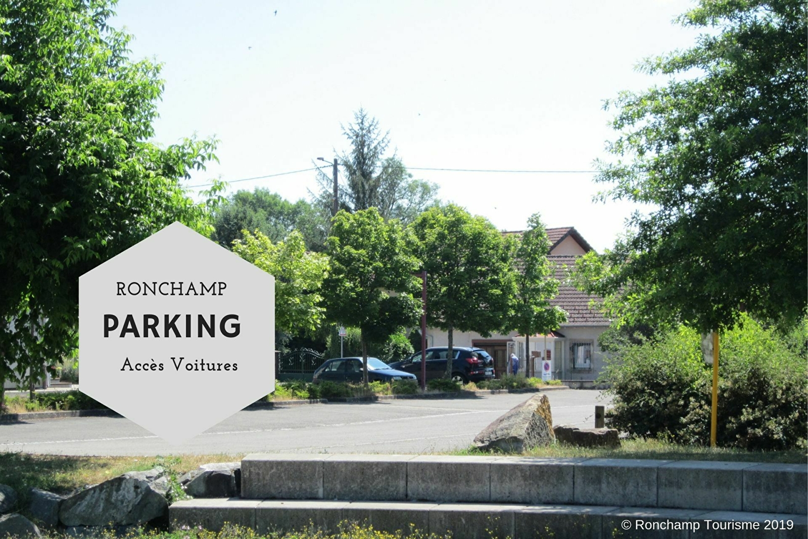 Place de stationnement public attenant à la Salle des Fêtes du village de Ronchamp.