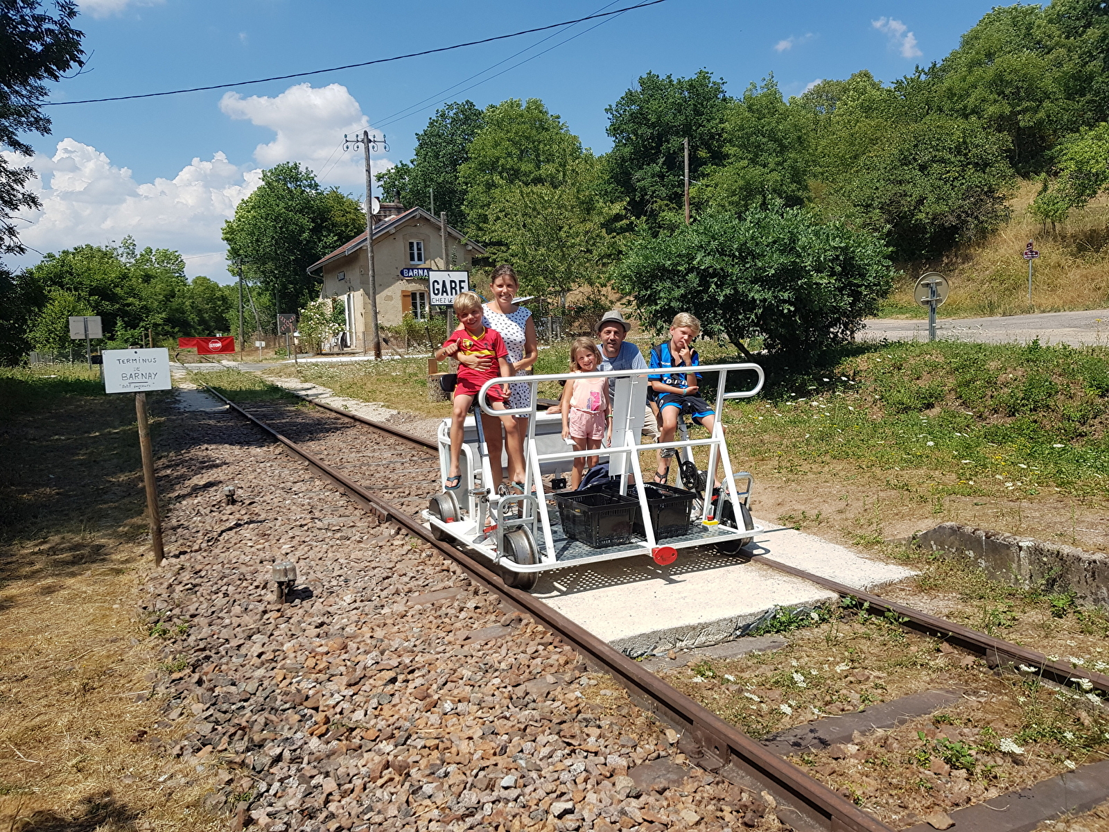 De 2 personnes MINIMUM à 5 personnes MAXIMUM par vélorail (2 adultes et 3 enfants par exemple).